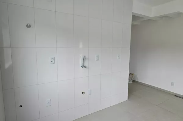Apartamento com dois quartos, sala, cozinha, e lavanderia conjugadas, e vaga de estacionamento;
