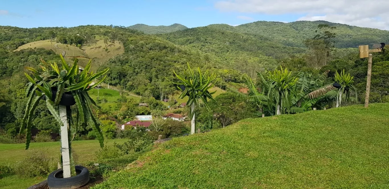 Terreno urbano com 16.670,00 m², situado na rodovia SC-281 em São Pedro de Alcântara, topografia ondulada, mata nativa, área com pastagem, construção de alvenaria com 30,00 m², área coberta com 36,00m², variadas plantas frutíferas, água potável, energia elétrica instalada.