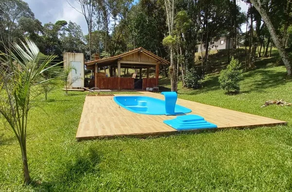 Casa de madeira, com 02 dormitórios, 02 banheiros, sala, cozinha ampla, área com piscina, churrasqueira, fogão e forno a lenha. Existente também na propriedade uma Casa de Alvenaria em construção.
