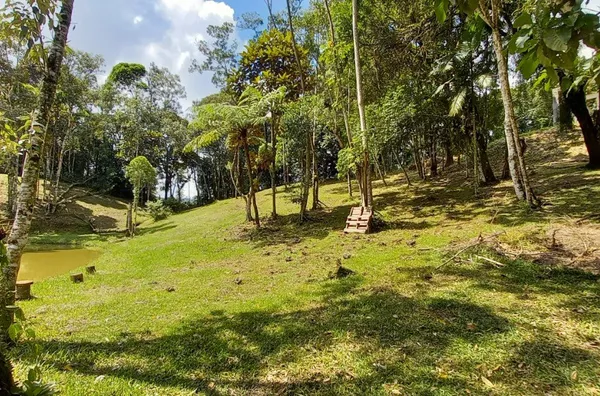 Sítio situado em São Pedro de Alcântara, no Bairro Rio Forquilhas, com 20.000,00m² totalmente cercado, com topografia ondulada, local alto com vista panorâmica, pastagem, mata nativa e lindo bosque, lago com peixes, galinheiro.