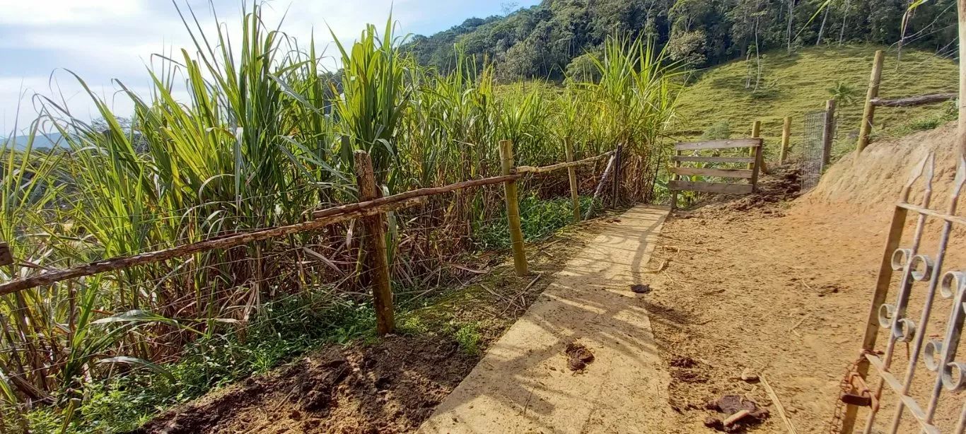 Sítio em São Pedro de Alcântara, no bairro Vila Junckes, com 20.000,00m², topografia acidentada, aproximadamente 15.000,00m² de área útil com pastagem, frutíferas, açude com peixes e benfeitorias, e 5.000,00m² de mata nativa(reserva legal), água corrente, água potável de nascente externa á propriedade.