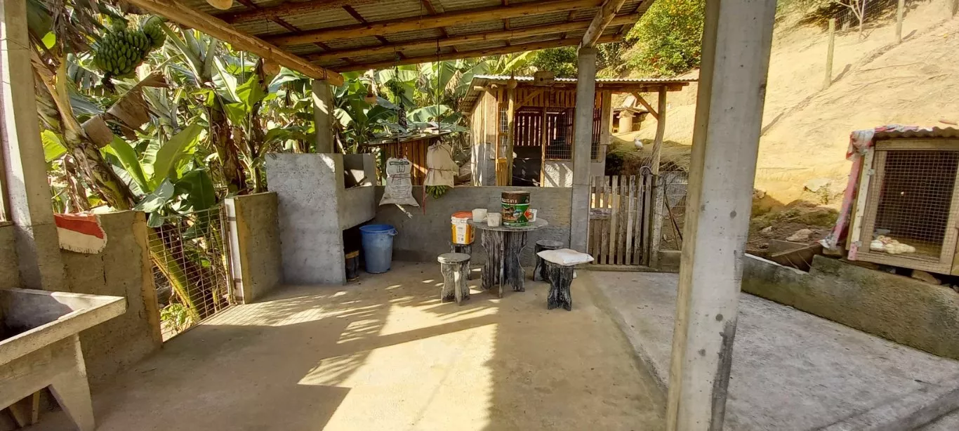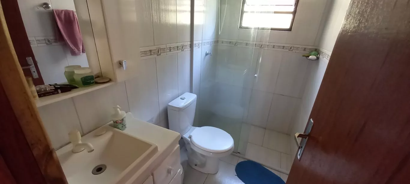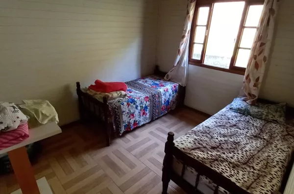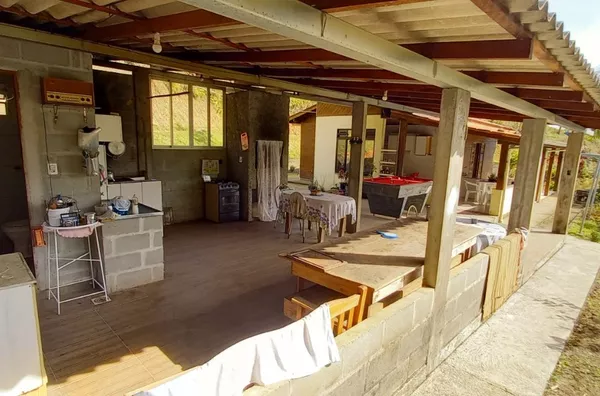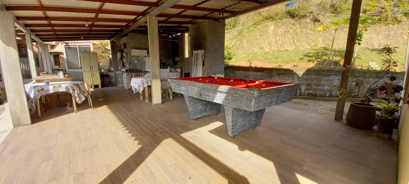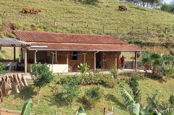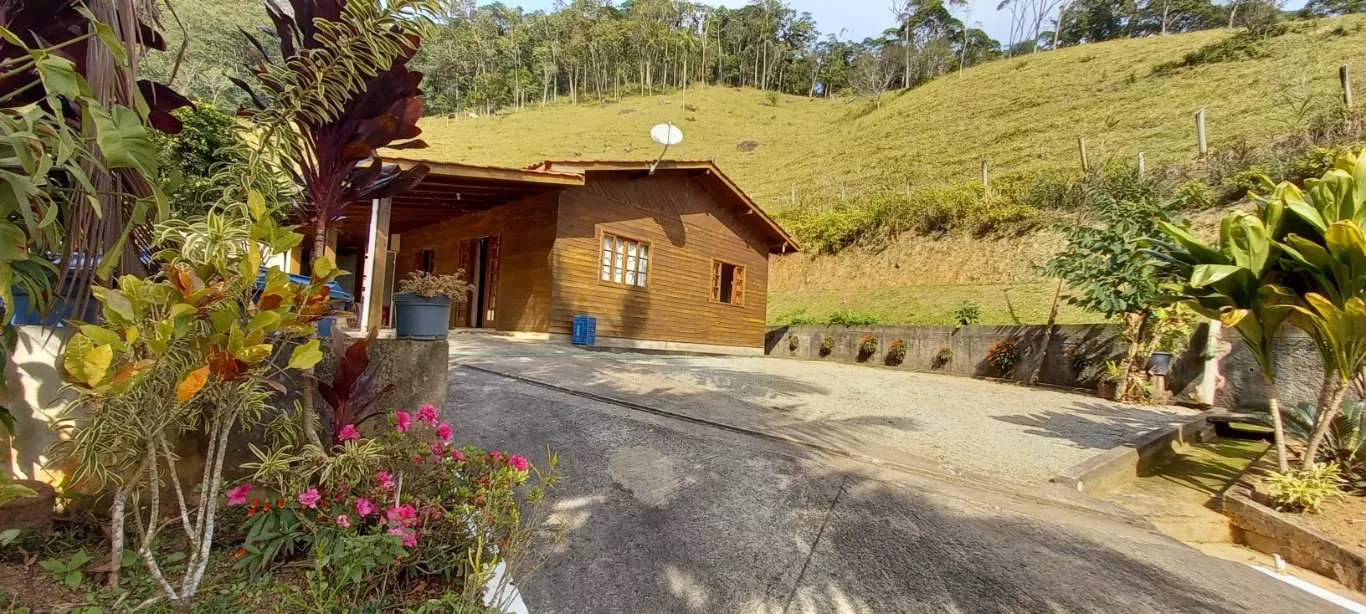 Casa de madeira tratada com 100m², possui 02 dormitórios, 01 banheiro social, sala e cozinha conjugada, garagem. MOBILIÁRIO NÃO INCLUSO. Área de lazer aberta com 60m2, churrasqueira , fogão a lenha e banheiro. Área de serviço com 25,00m², galinheiros, chiqueiro para porcos, estábulo para gado. ANIMAIS NÃO INCLUSO.