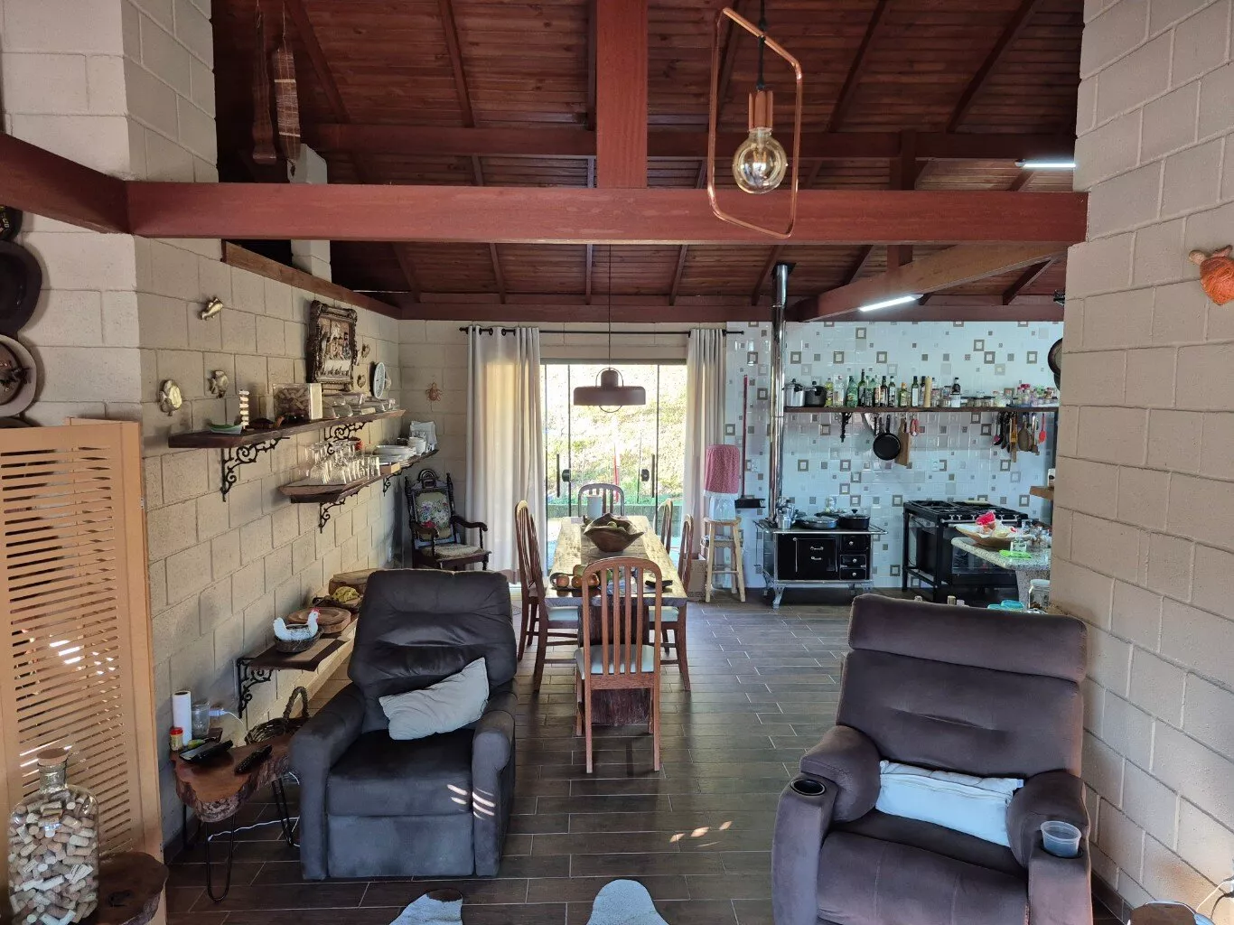 Casa em alvenaria com 240m², sala e cozinha integradas, 01 suíte com closet, varanda e garagem com 80m² e 02 vagas coberta.