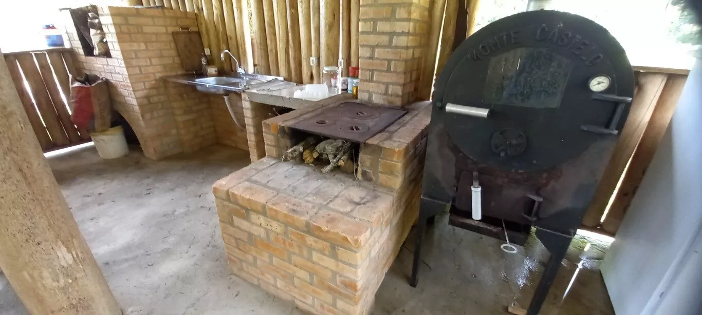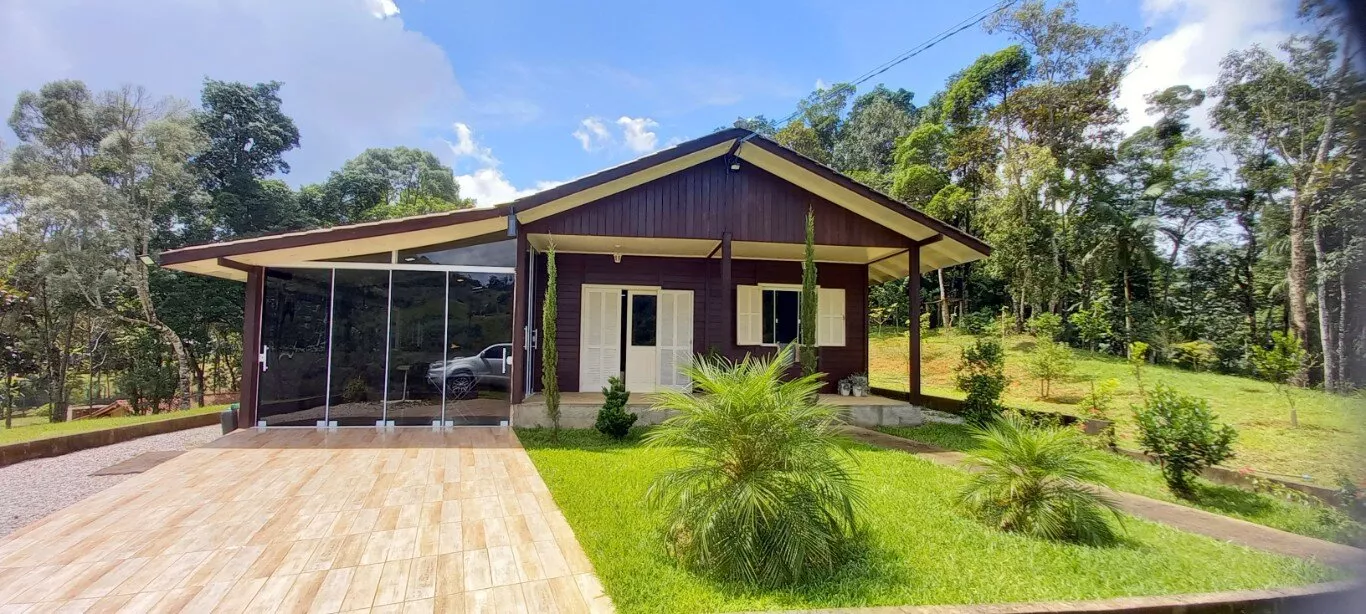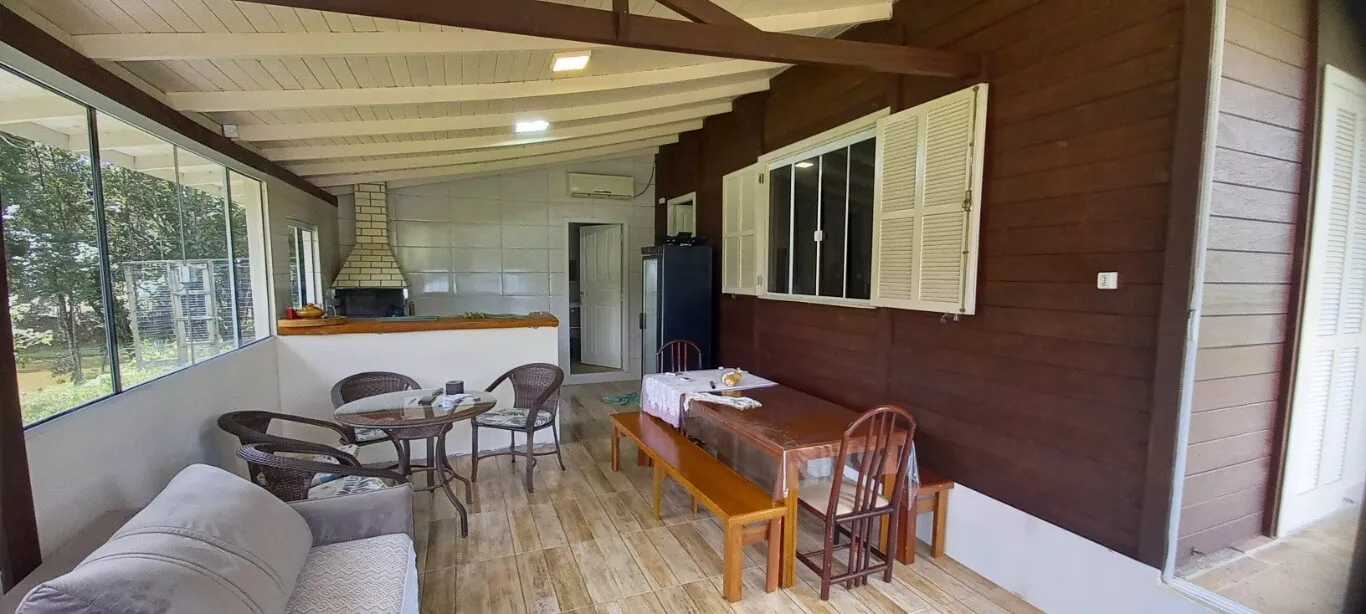 Casa de madeira, com 02 dormitórios, 02 banheiros, sala, cozinha ampla, área com piscina, churrasqueira, fogão e forno a lenha. Existente também na propriedade uma Casa de Alvenaria em construção.