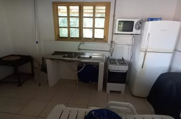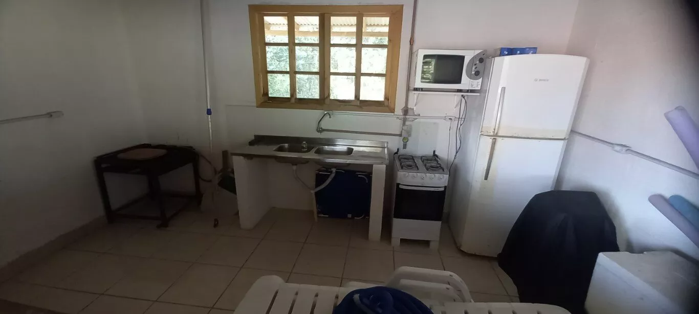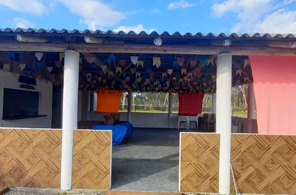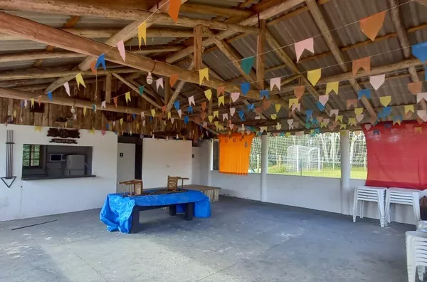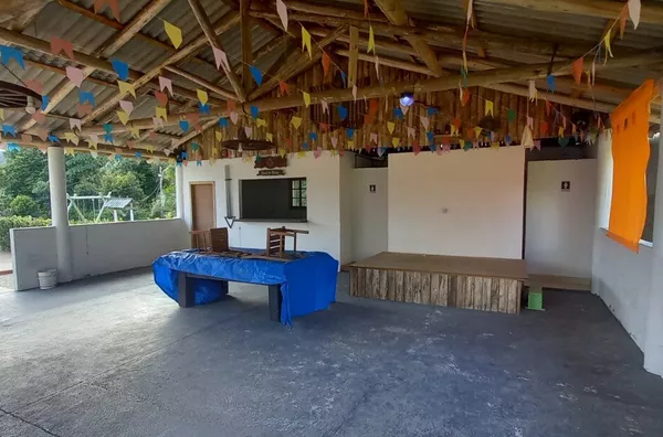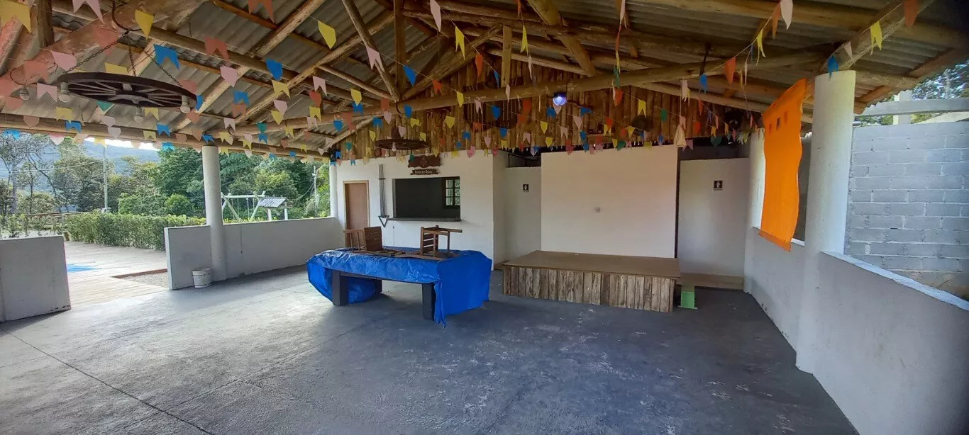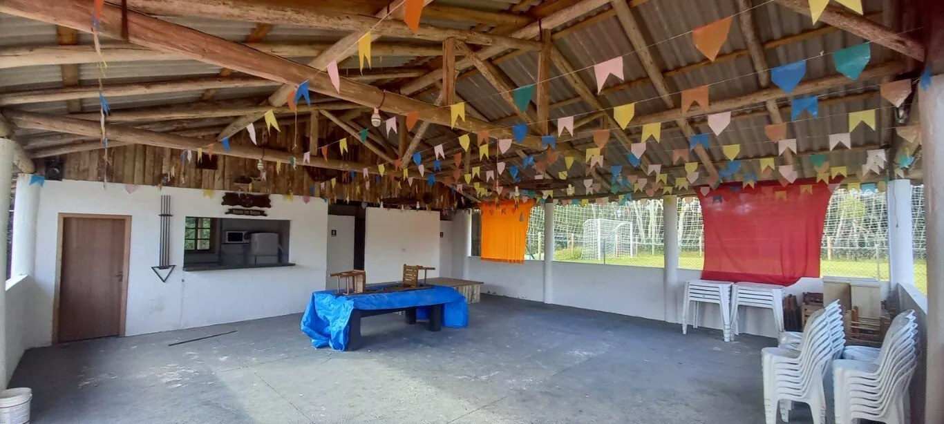 Galpão aberto com 130m² para festas e eventos, com bar e cozinha, 02 banheiros.