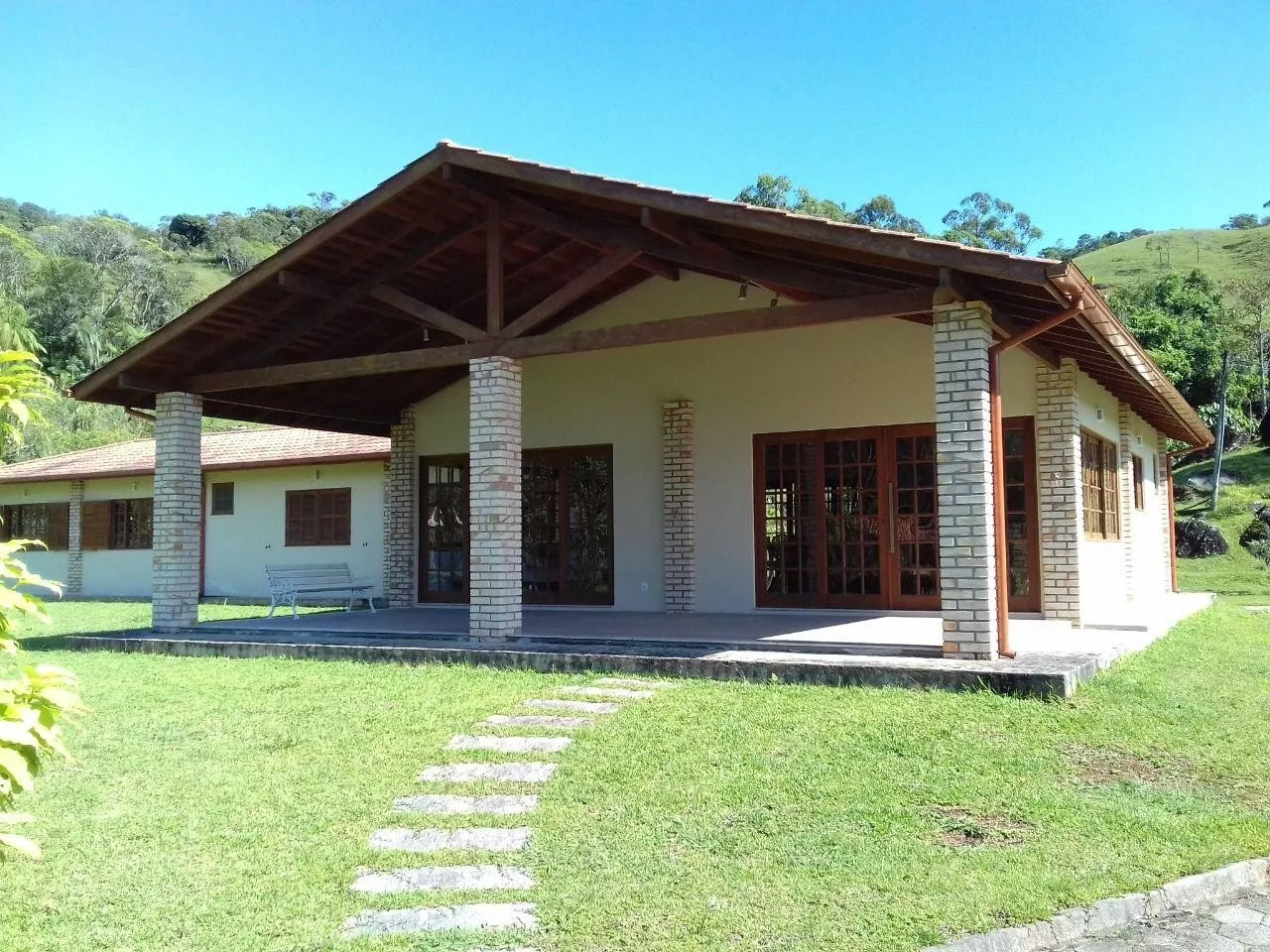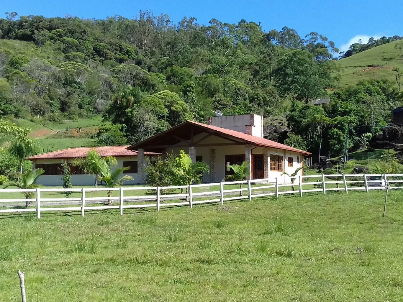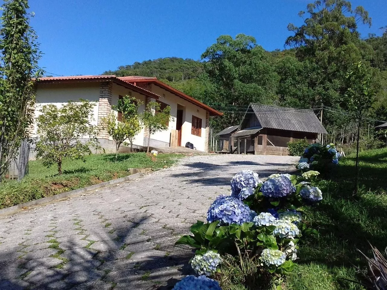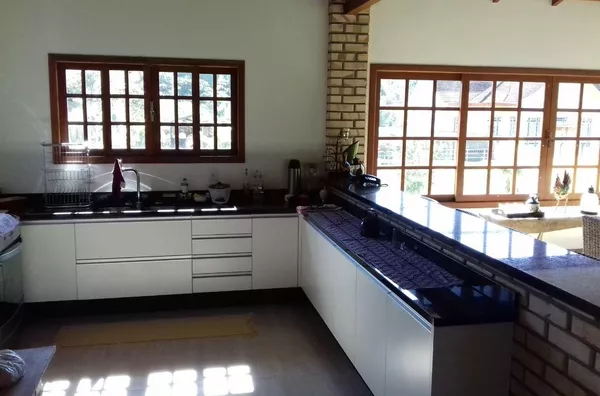 Casa Principal com Área construída: 269m², 04 dormitórios, 02 banheiros. Lavanderia, Sala e cozinha conjugadas proporcionando um ambiente conceito aberto com Fogão a lenha e churrasqueira, 2 vagas de garagem cobertas