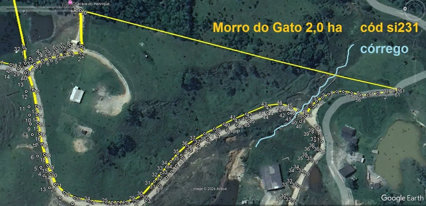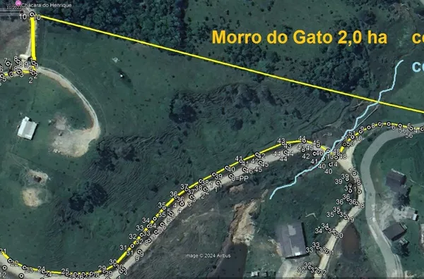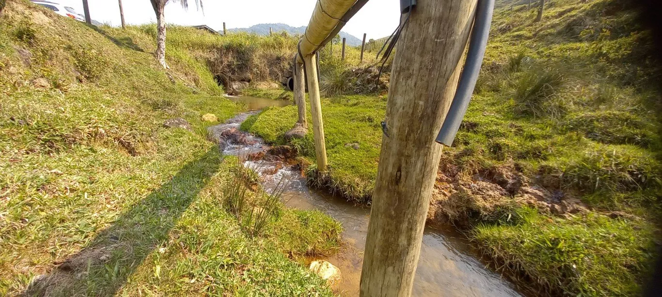 Terreno rural situado em São Pedro de Alcântara, com 20.000 m², topografia ondulada, todo cercado, 100% em pastagem, local elevado com linda vista panorâmica, água de nascente externa, córrego passando no interior da propriedade.
