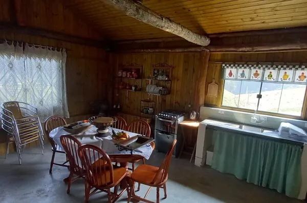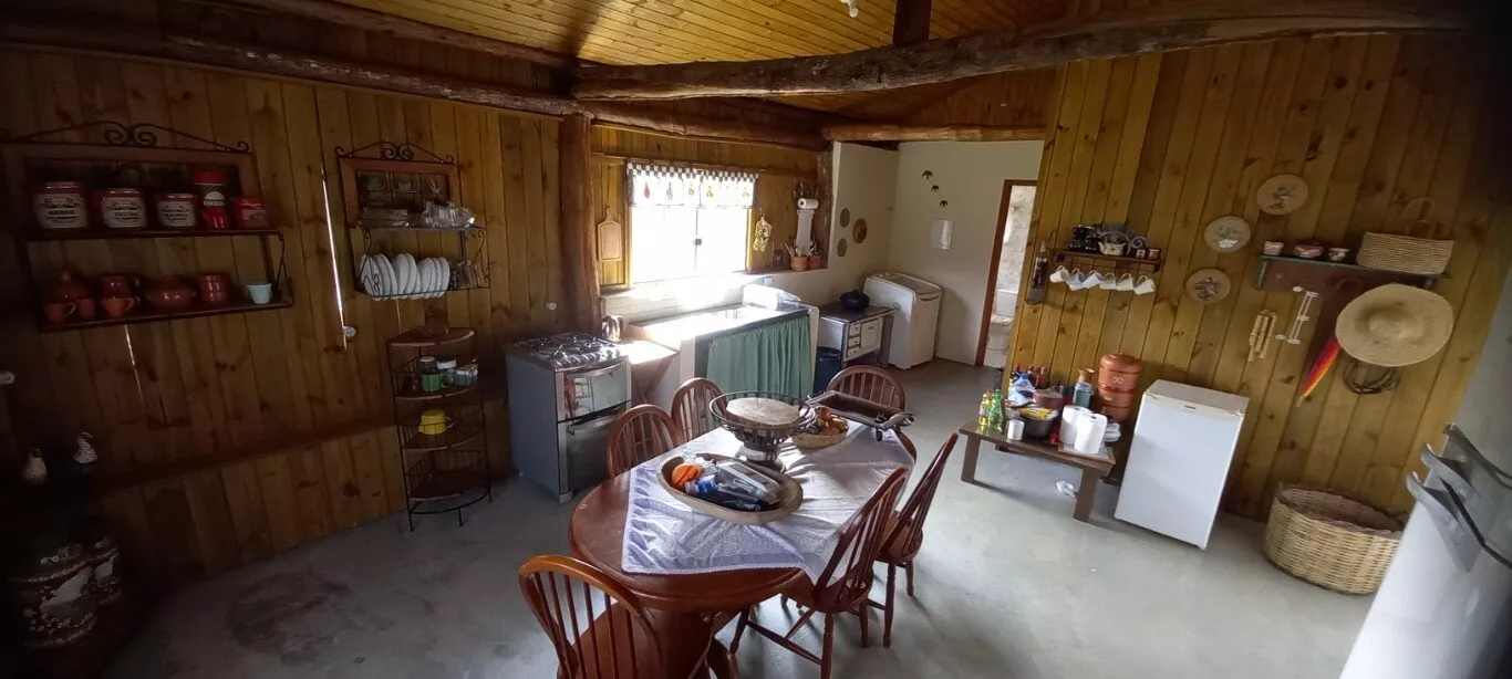 Casa de madeira com 01 dormitório, 01 banheiro social, sala e cozinha integradas, varanda com churrasqueira, energia elétrica instalada, rede de internet fibra disponível em frente ao imóvel.