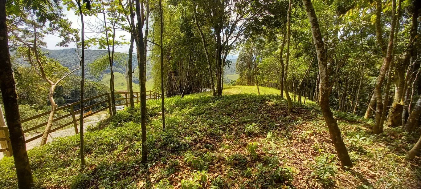 Sitio com 20.000,00m², topografia acidentada, mata nativa, bosque, local pronto para construção, ideal para cabanas, lindo córrego, água encanada, energia elétrica, rua pavimentada, espetacular vista para um vale, muito perto do centro de São Pedro de Alcântara.
