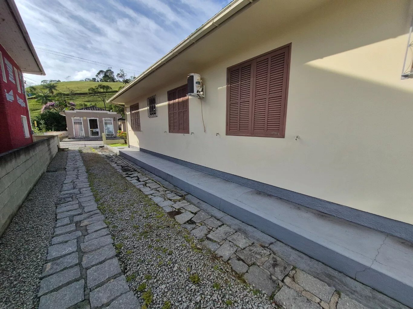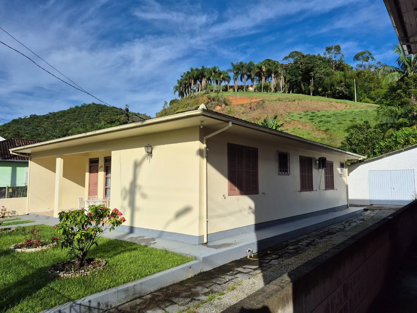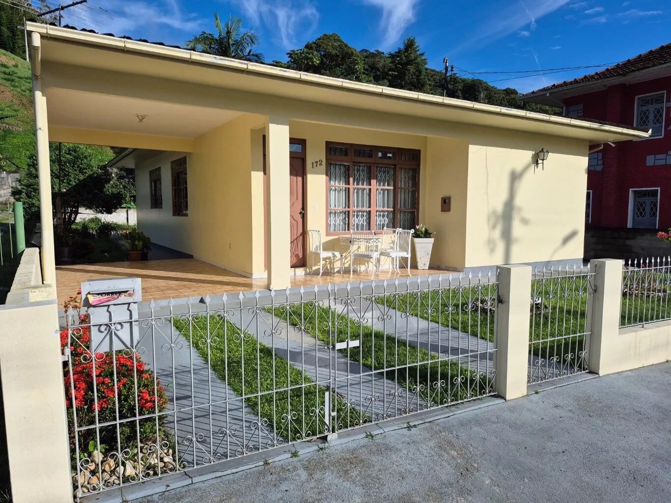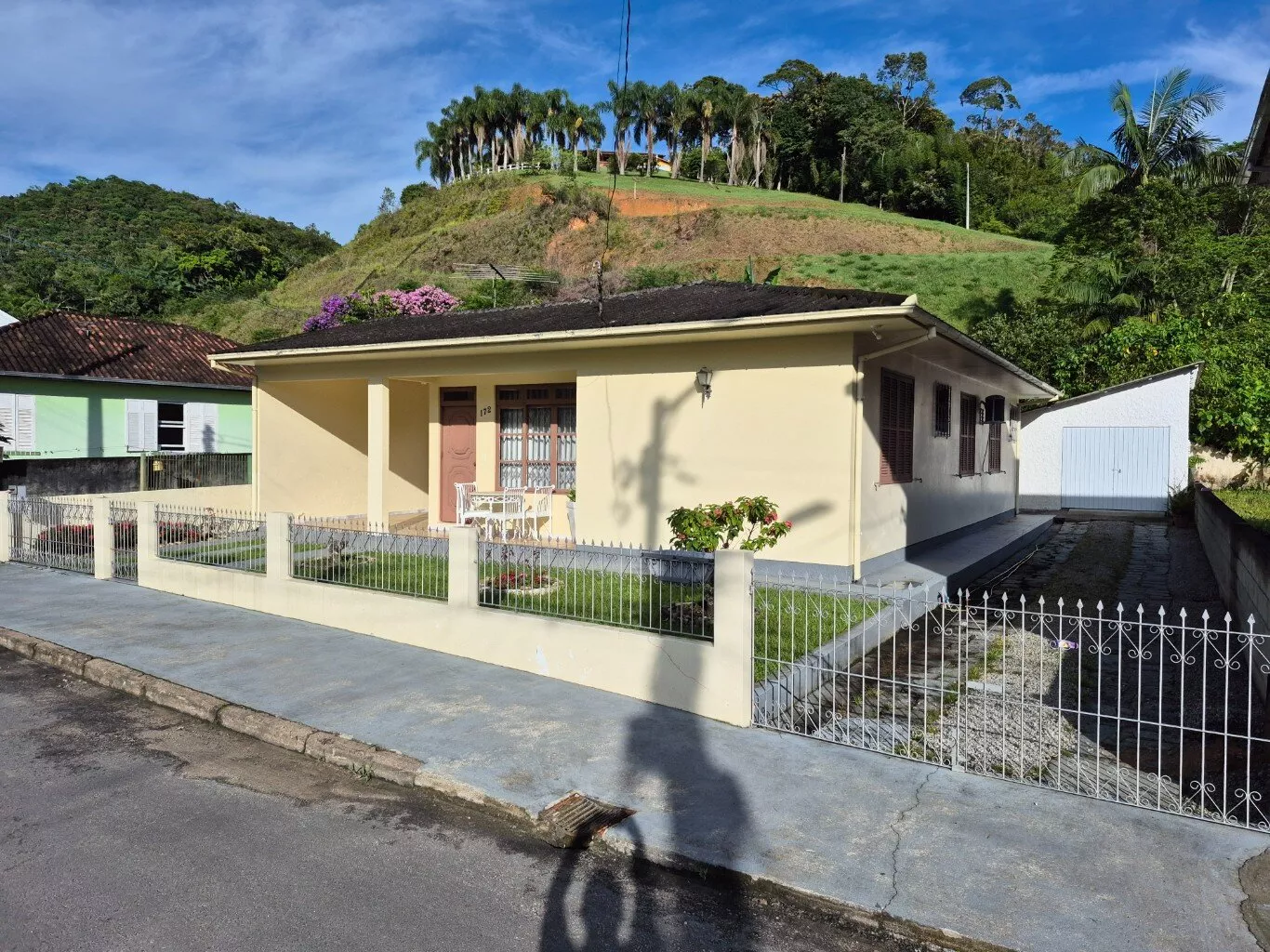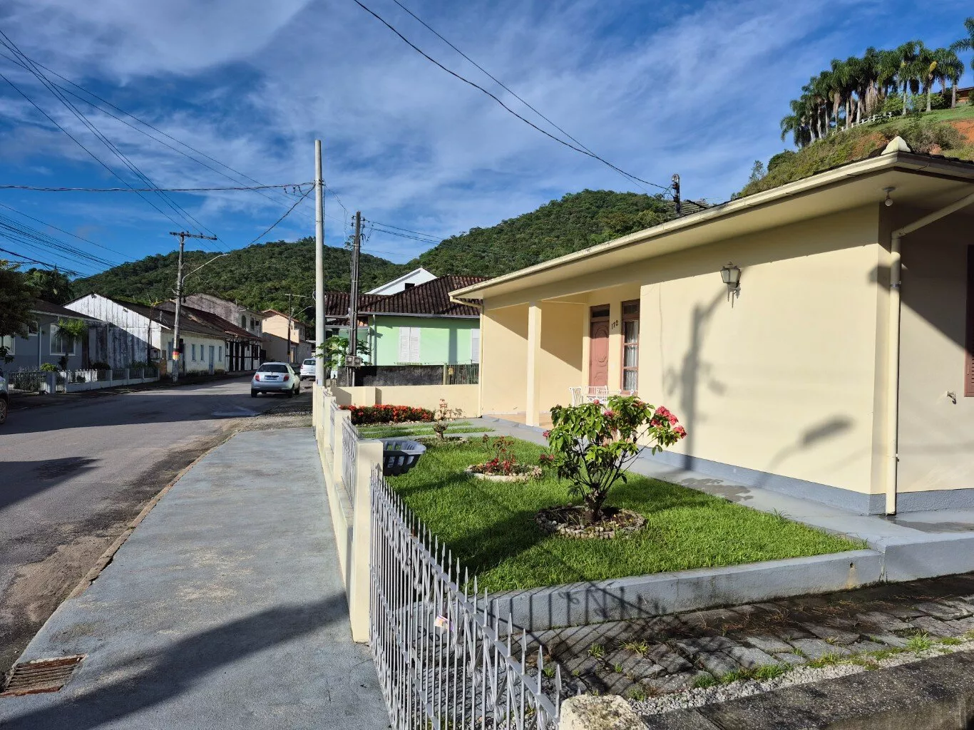 Ótima casa de alvenaria, no centro da cidade de São Pedro de Alcântara, localização nobre, 50,00 metros da praça central, com 160,00m² de área construída, distribuída em 03 dormitórios, 01 sala, 01 cozinha, 01 banheiro social, área de serviço com depósito e banheiro, 02 vagas de garagem coberta.
