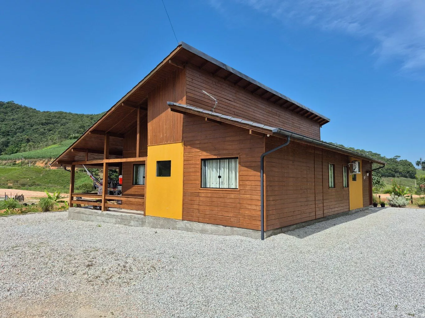 Casa recém construída, madeira pinus tratado com parede dupla, 149,00m² de área construída, 03 dormitórios, 01 suíte; 01 banheiro social, ampla sala e cozinha em conceito aberto, armários sob medida na cozinha; portão eletrônico; ar condicionado; grande varanda com churrasqueira, energia solar;