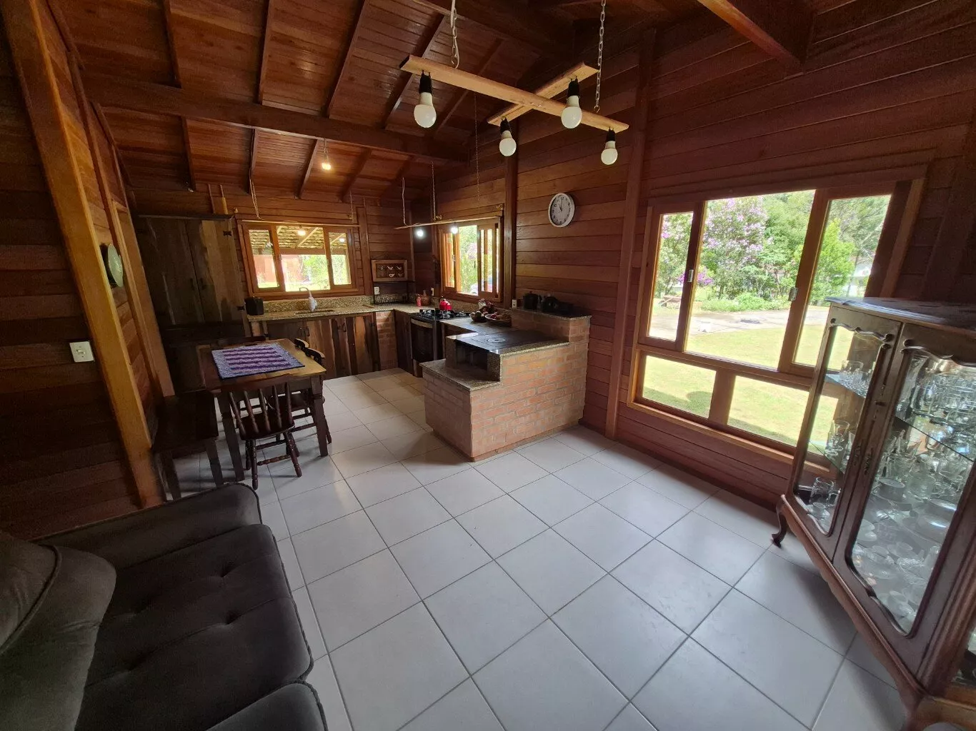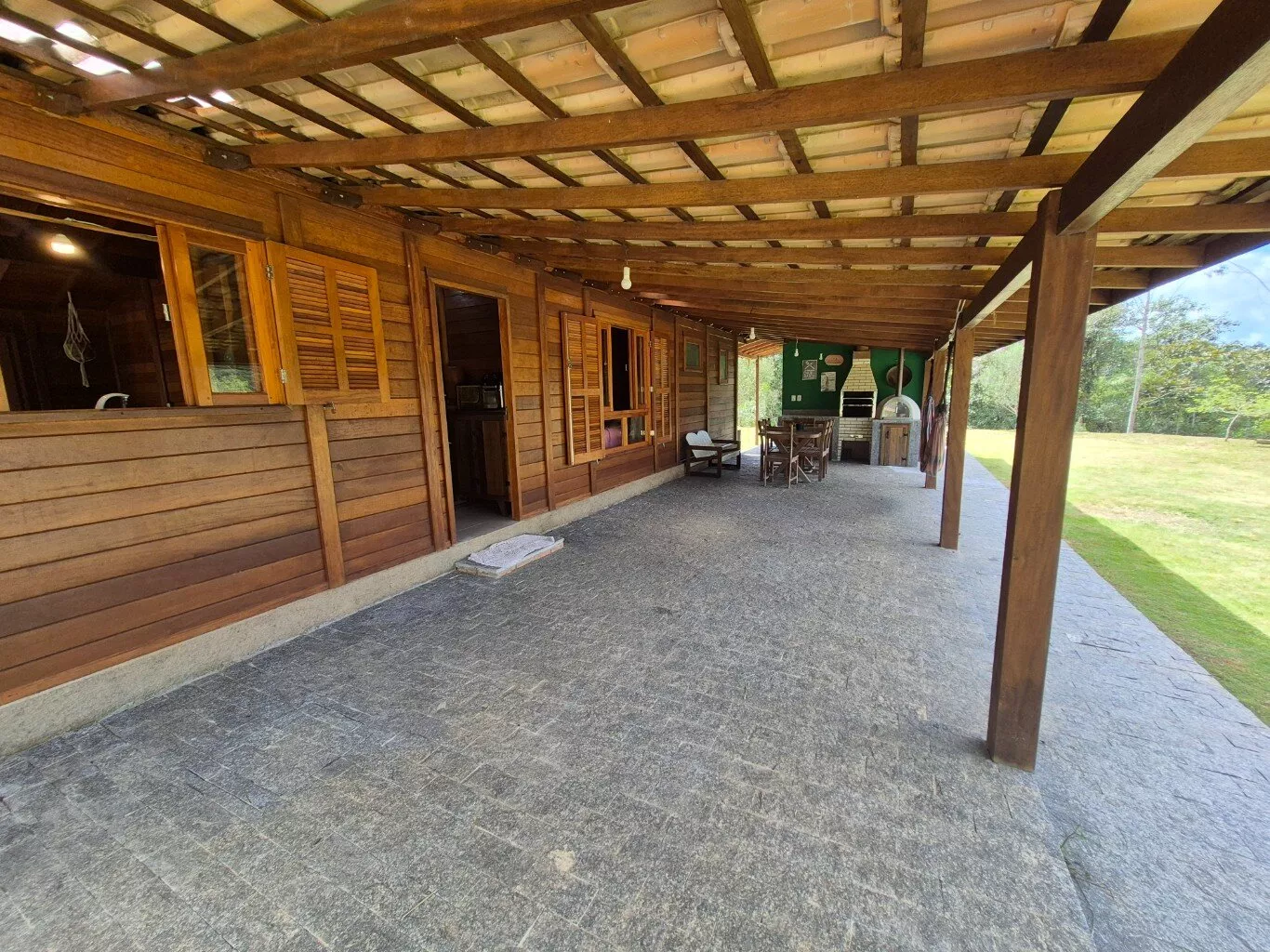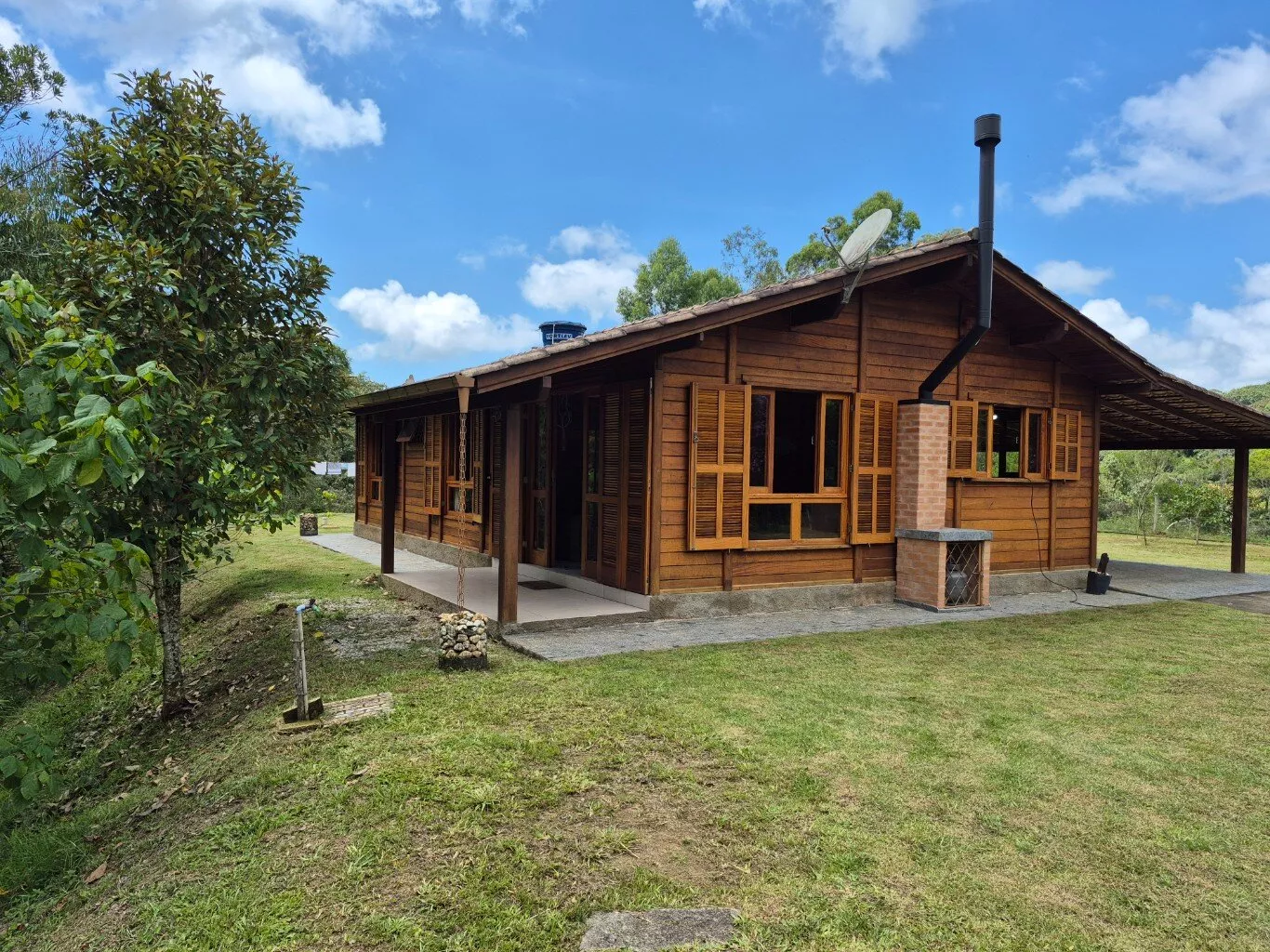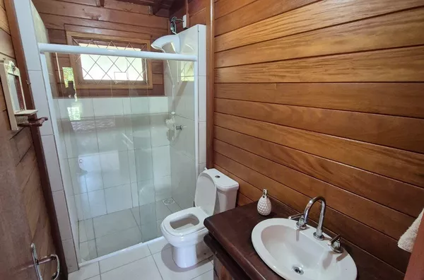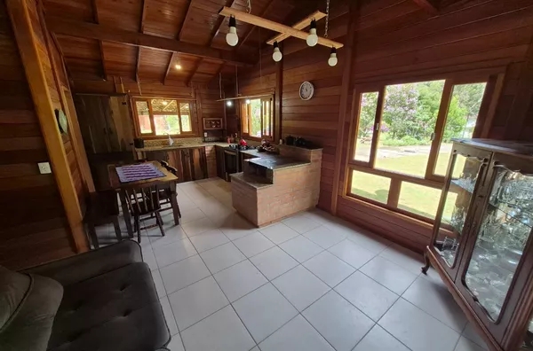 Casa de madeira de lei(garapeira), com 160,00m² de área construída, distribuída em 03 dormitórios sendo 01 suíte, sala e cozinha conceito aberto, fogão a lenha e bancada de cozinha, 01 banheiro social, lavanderia, ampla garagem, área com churrasqueira integrada, lavabo externo depósito de ferramentas. Mobiliário não incluso.