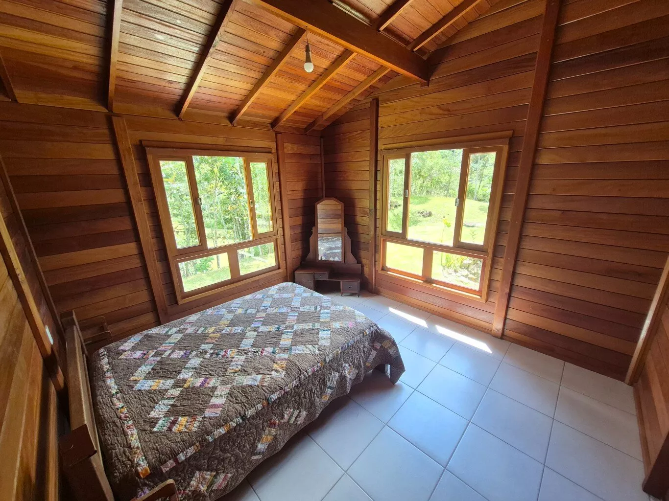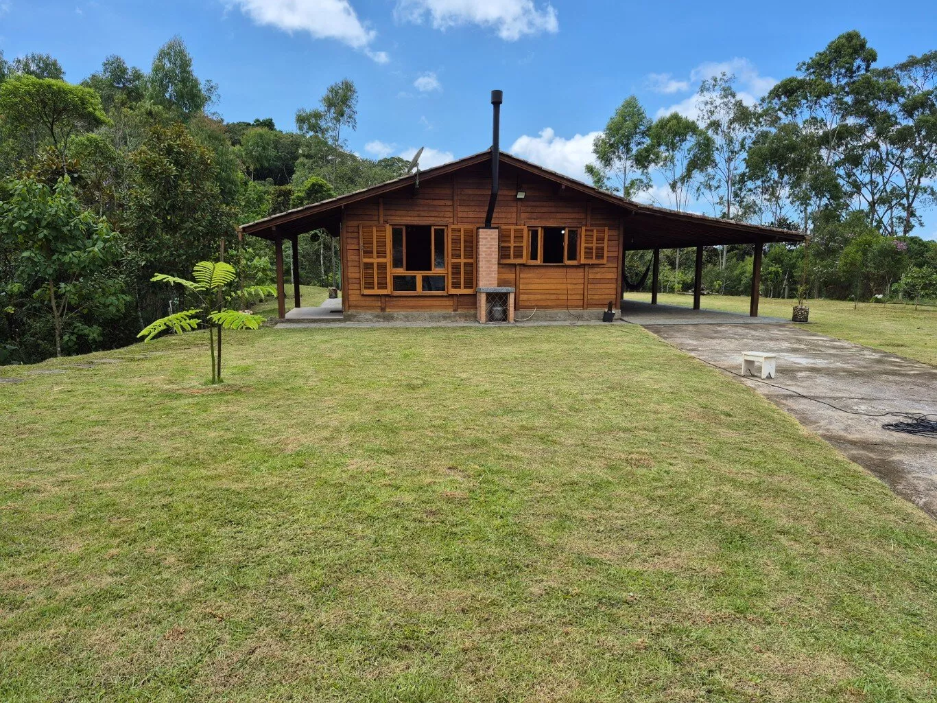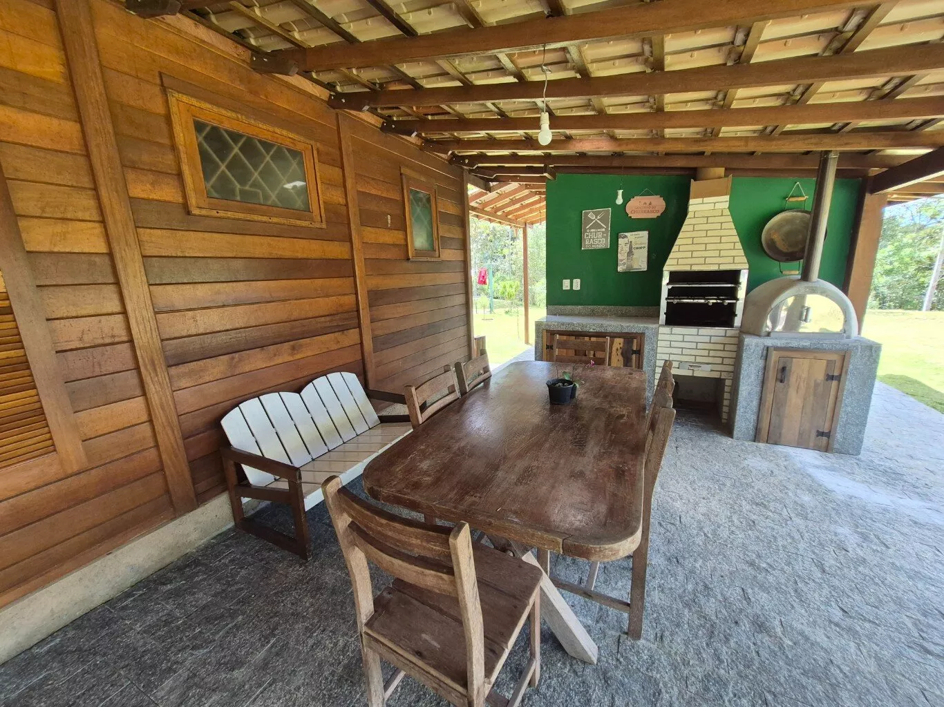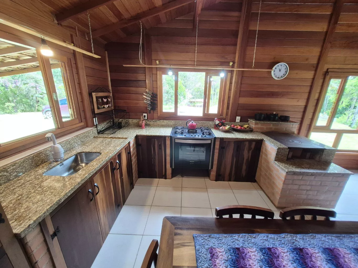 Casa de madeira de lei(garapeira), com 160,00m² de área construída, distribuída em 03 dormitórios sendo 01 suíte, sala e cozinha conceito aberto, fogão a lenha e bancada de cozinha, 01 banheiro social, lavanderia, ampla garagem, área com churrasqueira integrada, lavabo externo depósito de ferramentas. Mobiliário não incluso.