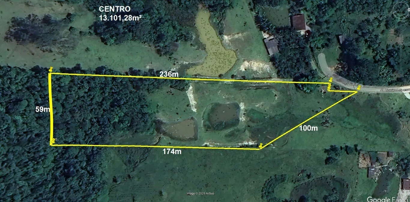 Lindo terreno urbano com 13.101,28m², topografia com leve ondulação, com aproximadamente 9.400m² em pastagem e 3.700m² em mata nativa, bosque, local pronto para construção, ideal para residência ou chácara de lazer, 2 açudes, córrego e nascente no interior da propriedade, energia elétrica, internet, rua sem saída, muita privacidade, muito perto do centro de São Pedro de Alcântara, apenas 1,7km da praça.