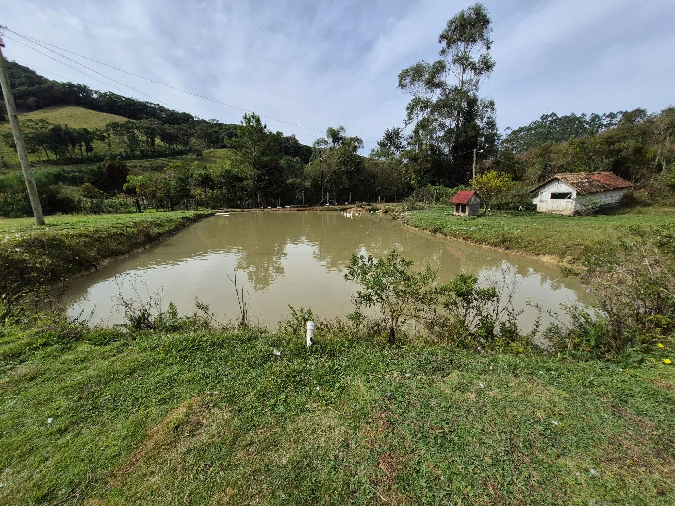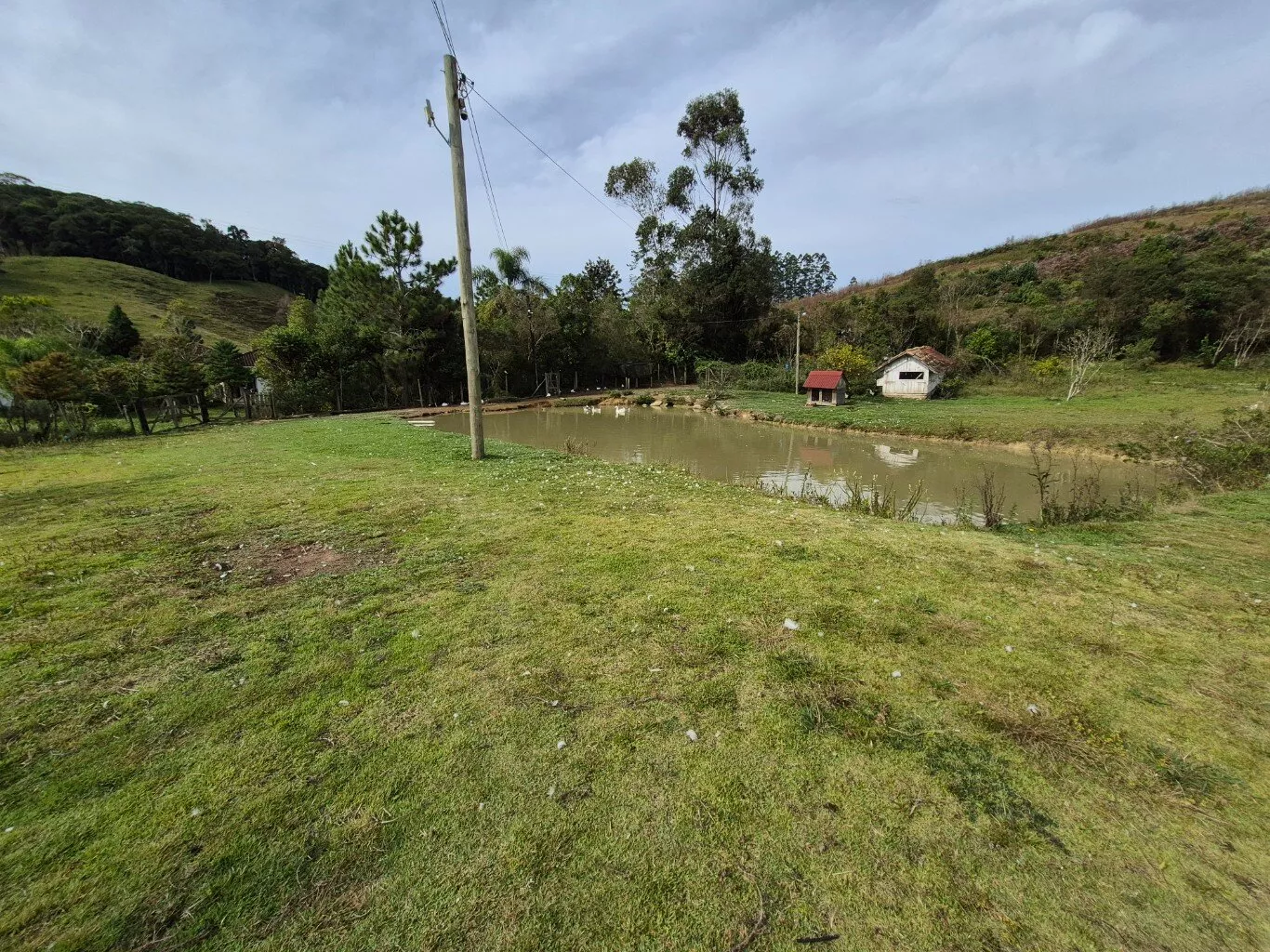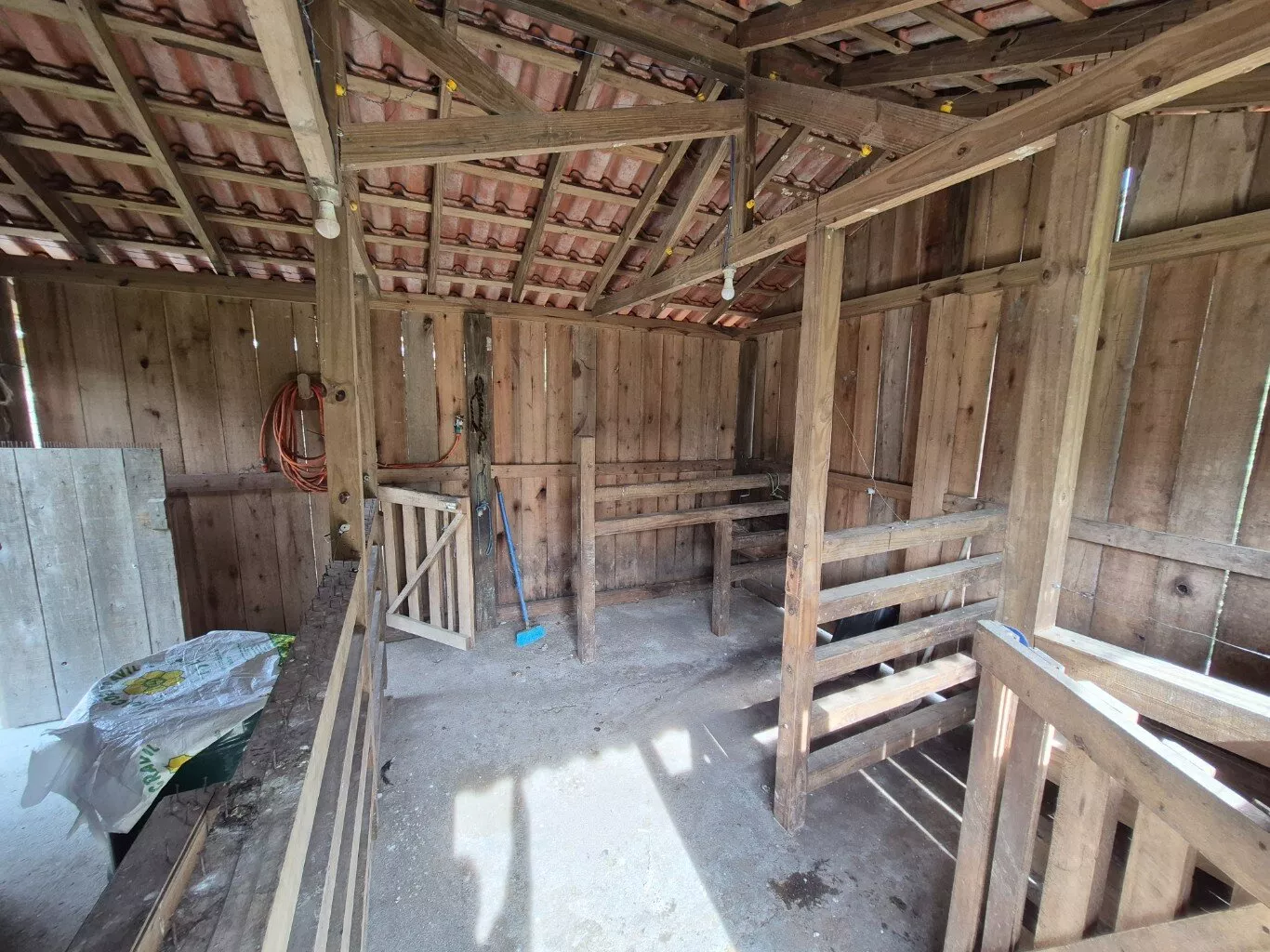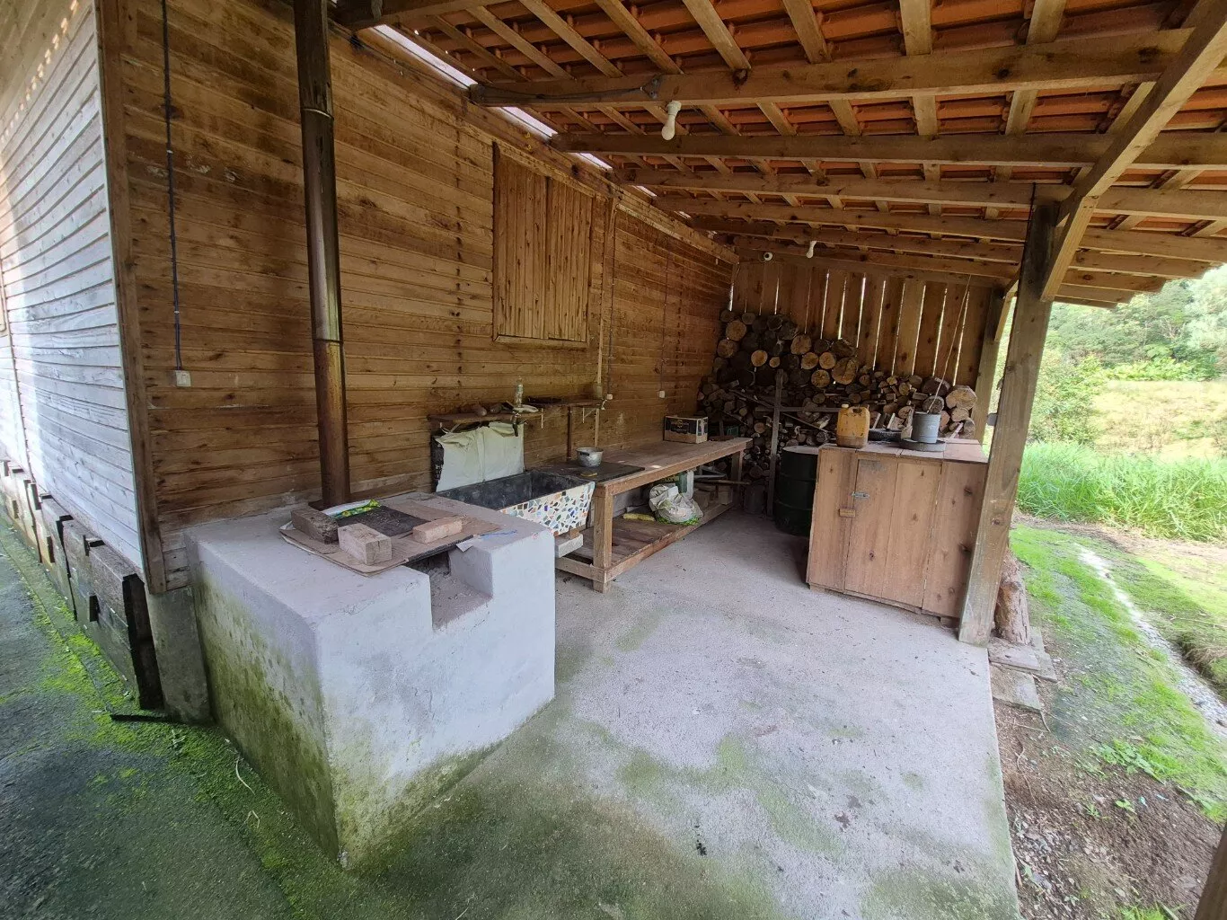 Rancho de madeira com aproximadamente 40m2 para guardar ferramentas. Uma cocheira e mais dois galinheiros.