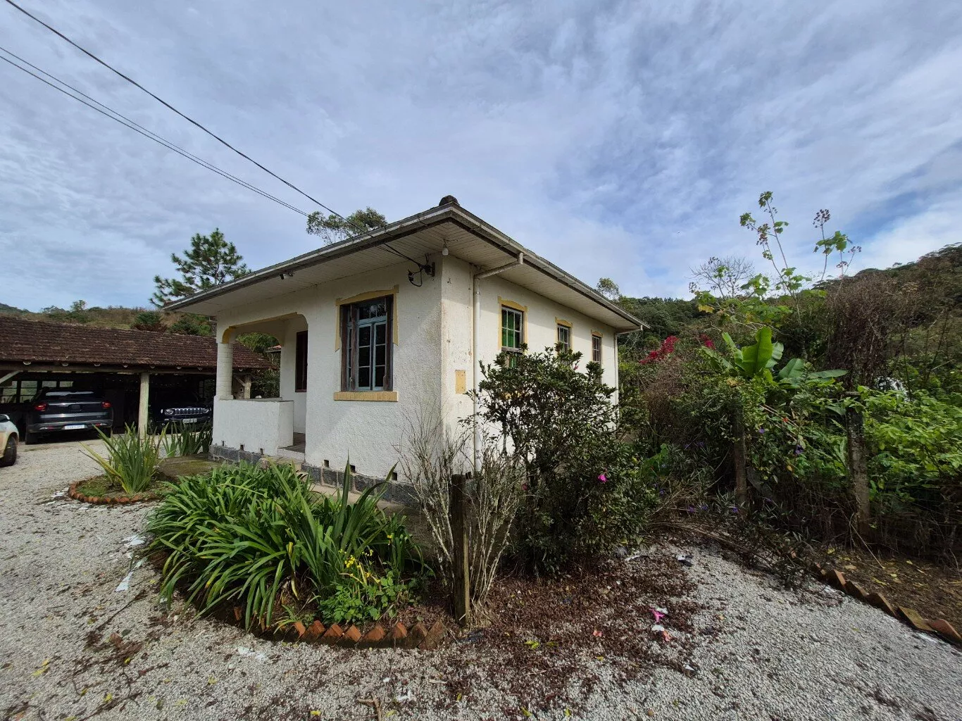 Casa Colonial em alvenaria com aproximadamente 120 m², 02 dormitórios, sala social com pisos de madeira original, outra sala e cozinha conjugada com fogão a lenha e lareira, banheiro social espaçoso, varanda. No fogão a lenha possui serpentina que aquece á água e é armazenada em um boiler que abastece banheira, chuveiro e torneira da cozinha.