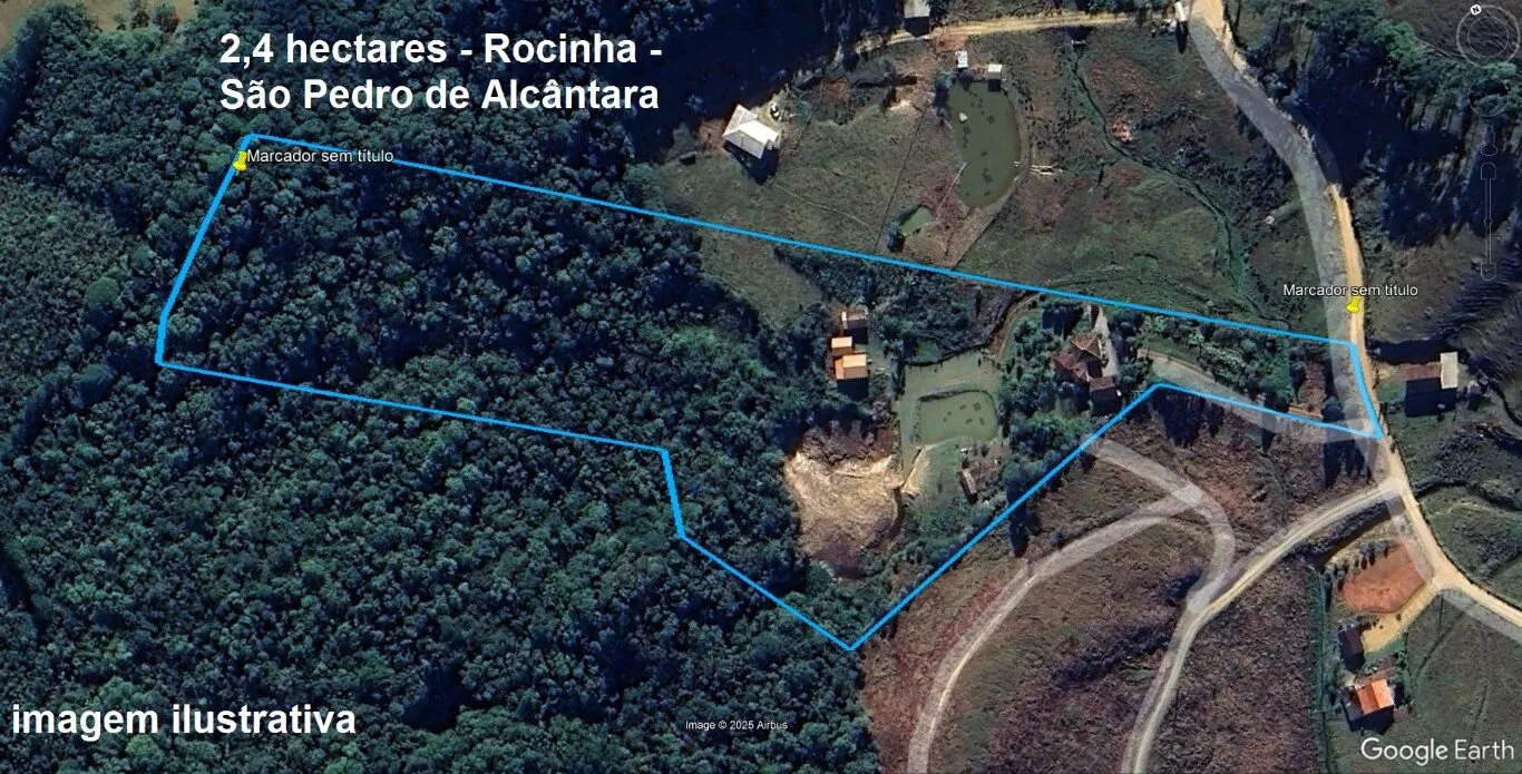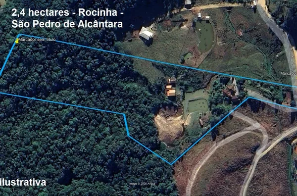 Terreno rural situado no Bairro rocinha em São Pedro de Alcântara, com 24.732,00 m², topografia semi plana, aproximadamente 1,4 hectares em mata nativa, o restante de 1,0 hectare está distribuído em chácaras de frutas, hortas orgânicas, 03 açudes para peixes, possui nascentes no interior da propriedade e que formam 02 córregos.