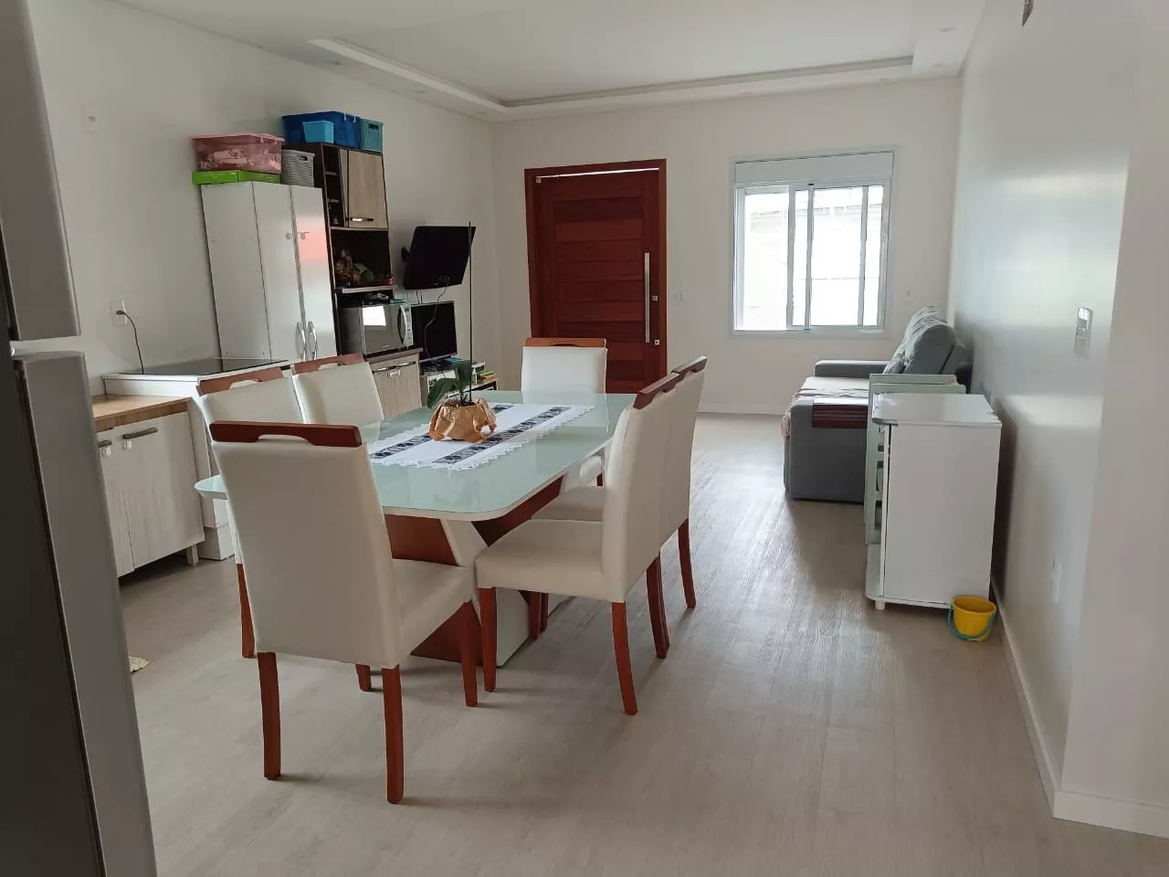 Possui 02 dormitórios sendo 01 suíte, (2 quartos com ar condicionado), 01 banheiro social, sala, lavanderia, ampla cozinha e sala conjugada e 02 garagens coberta.
