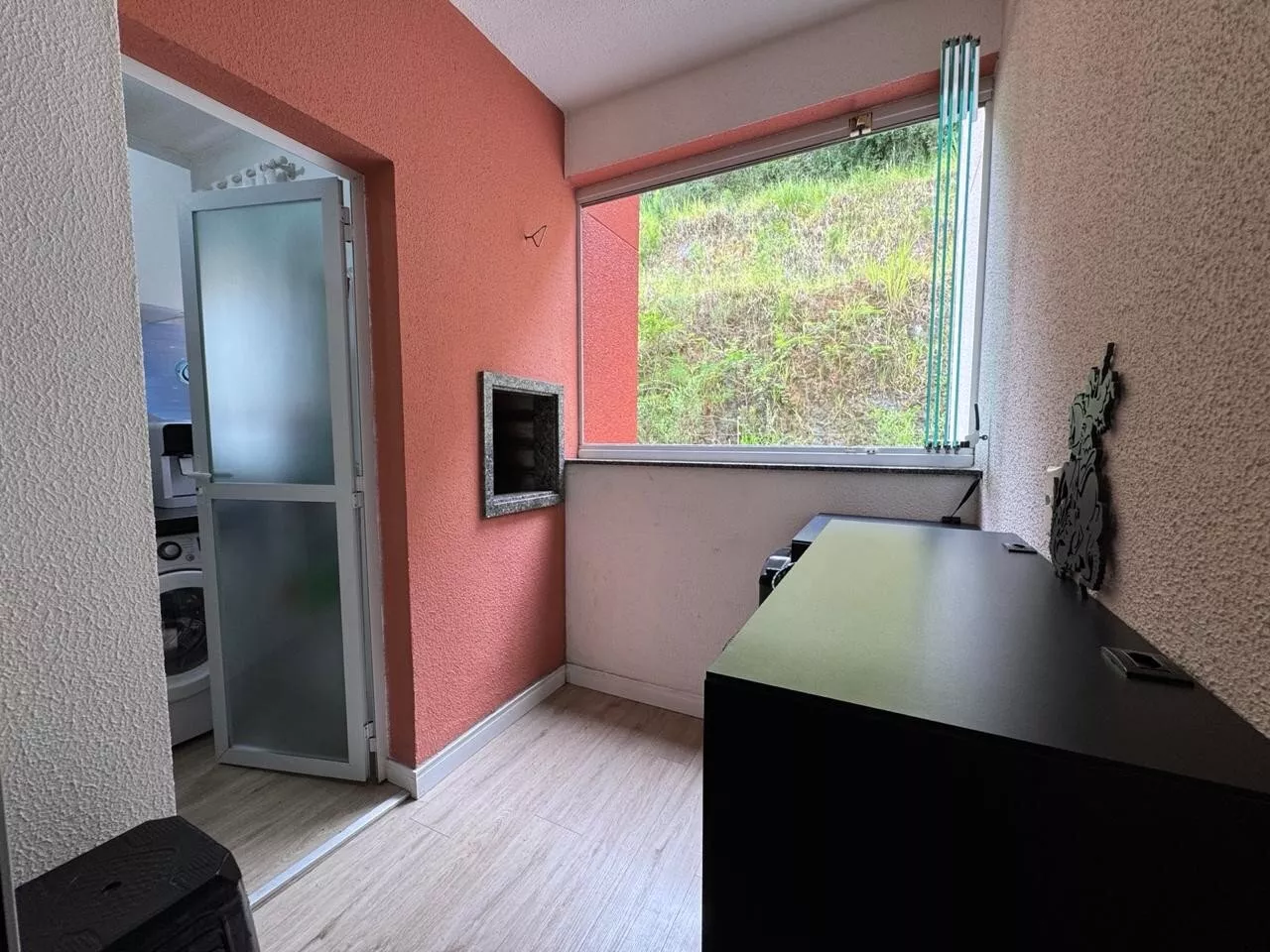 Sacada com churrasqueira com fechamento em Reiki;