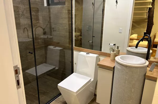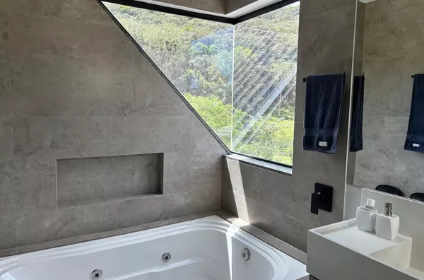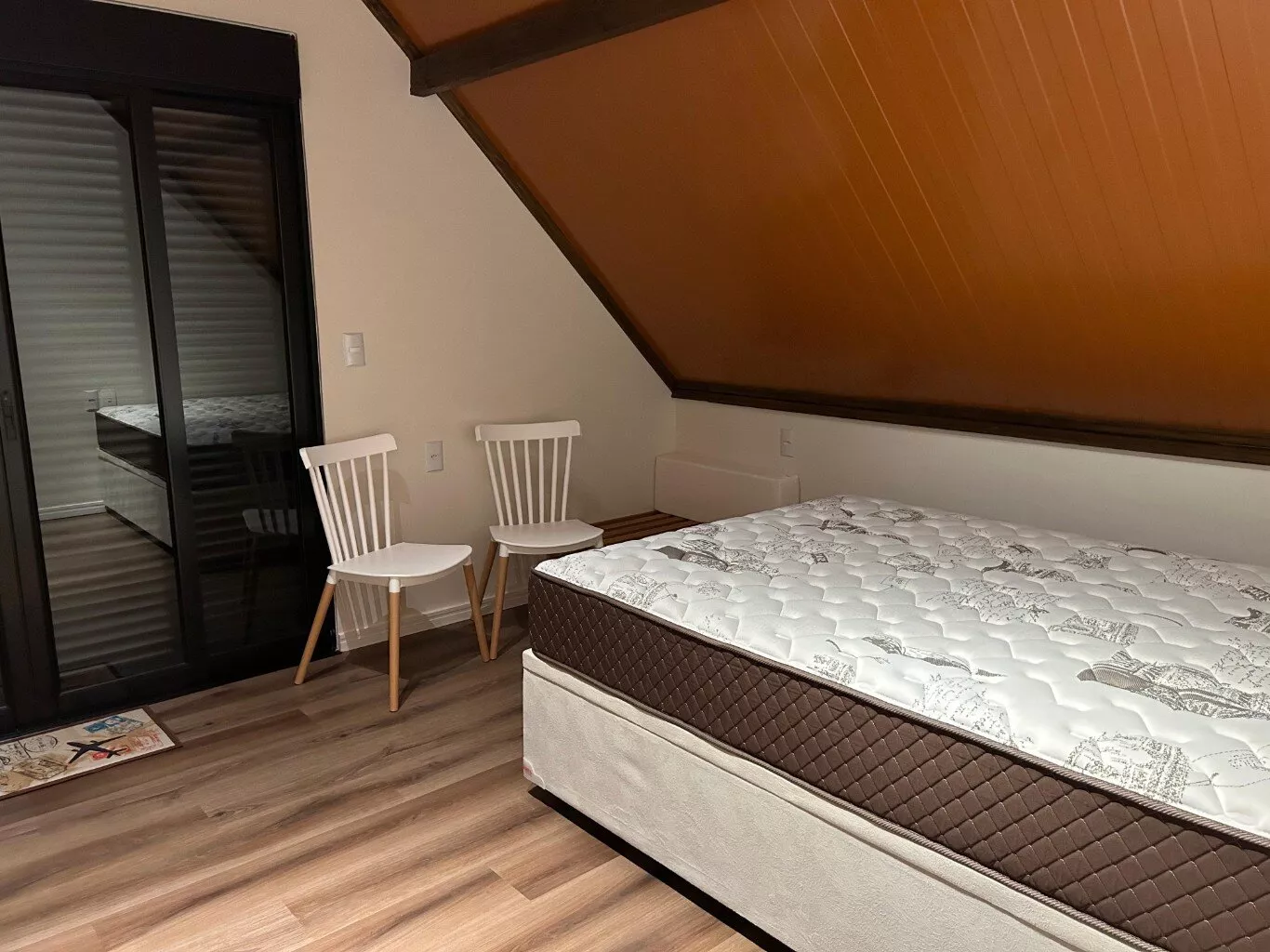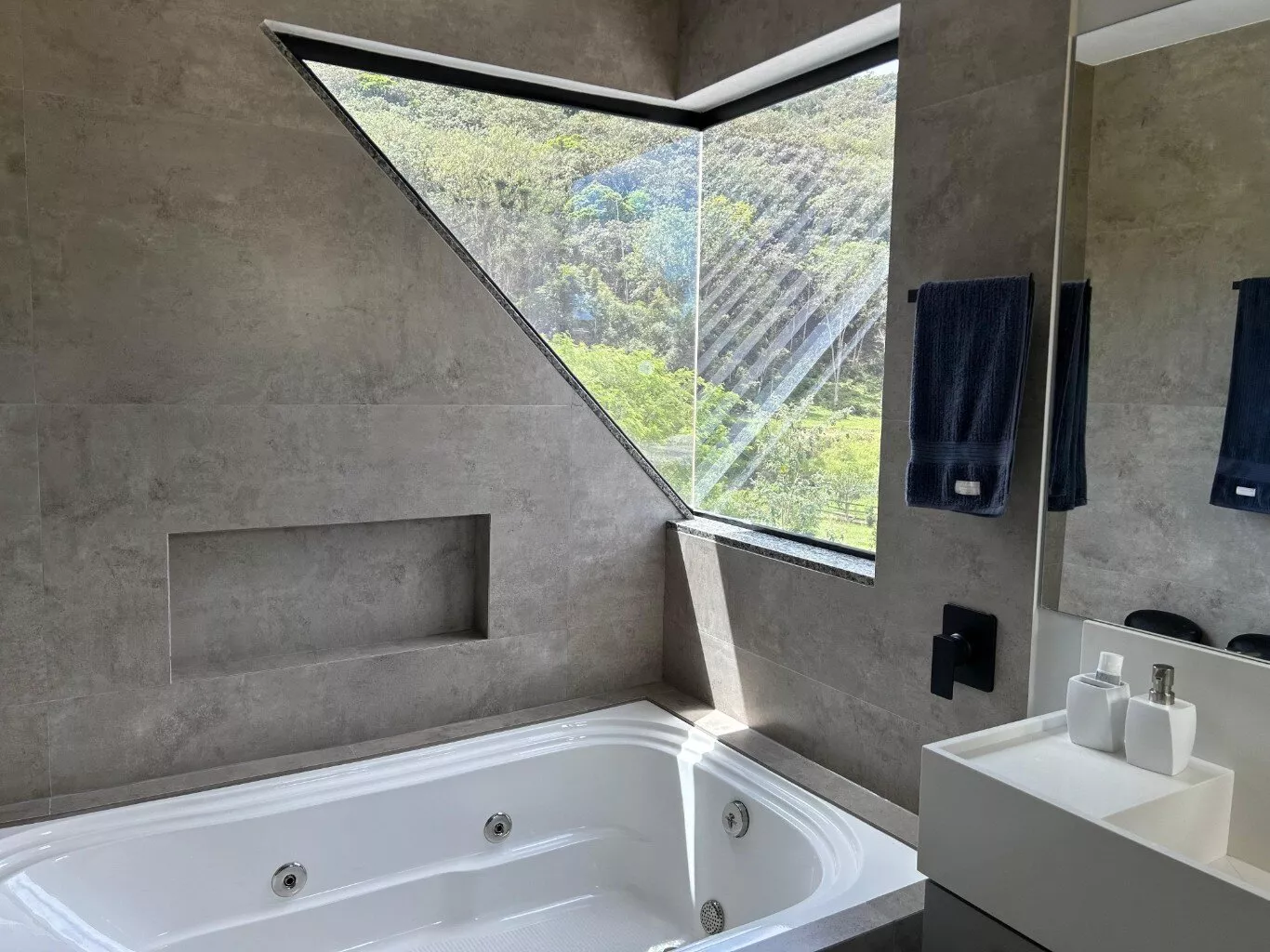 Lindo Chalé em alvenaria, de 02 pavimentos, com 100m² de área construída, 02 dormitórios, 02 banheiros, banheira de hidromassagem com vista para a mata, sala e cozinha integradas, área gourmet com churrasqueira, 02 vagas de garagem, todo mobiliado com excelente acabamento.