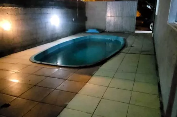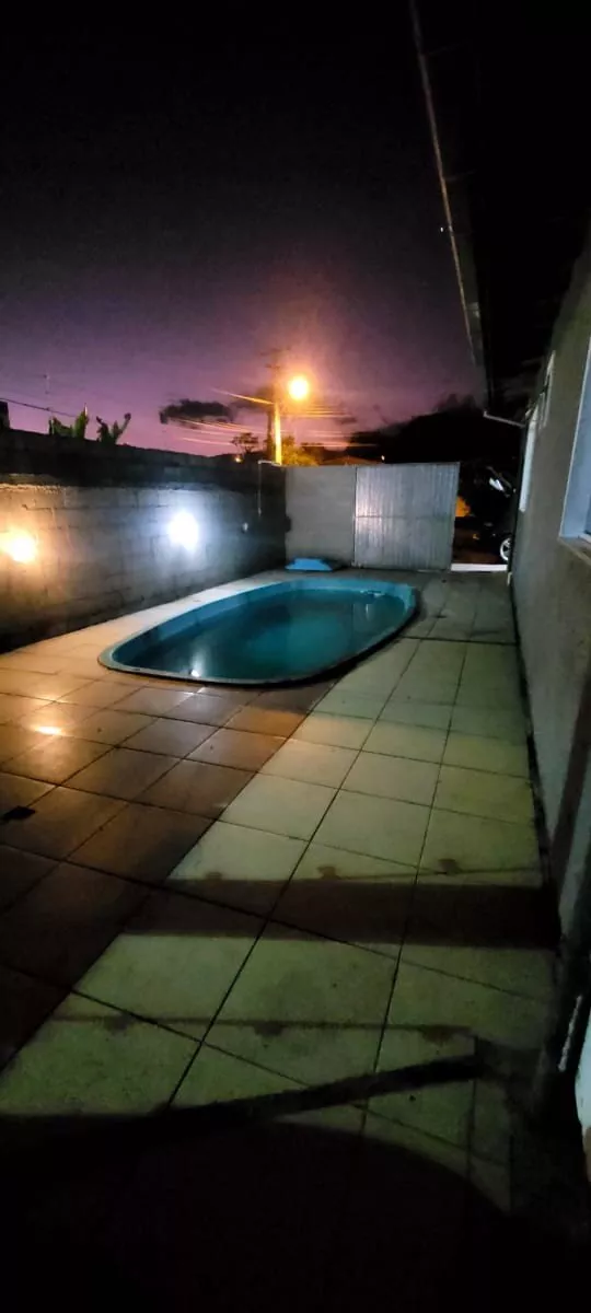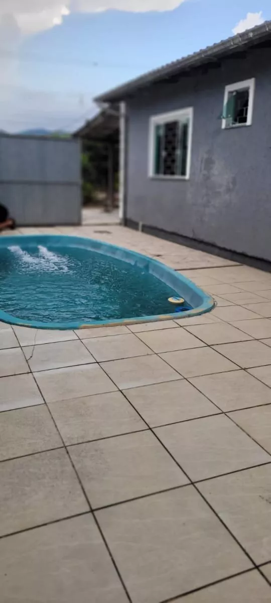Casa de alvenaria localizada em Forquilhas - São José, com 2 dormitórios, 01 sala e cozinha conjugada, lavanderia separada, depósito amplo, garagem para 2 carros, churrasqueira, piscina, quintal.