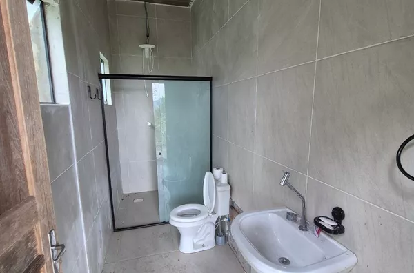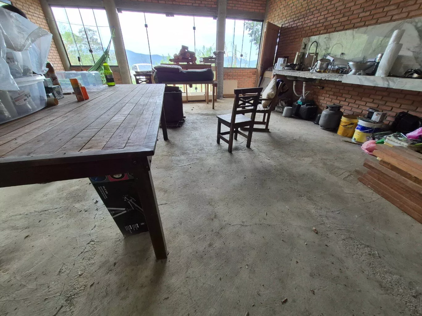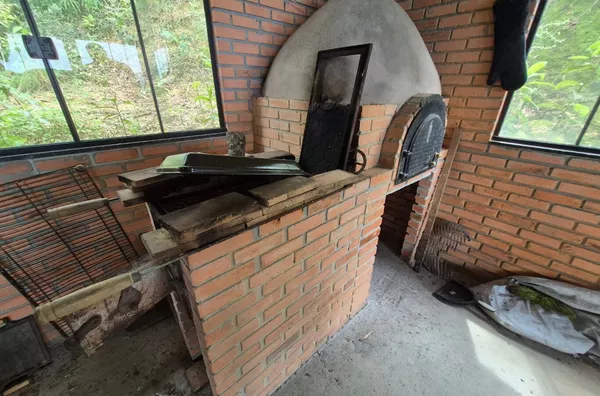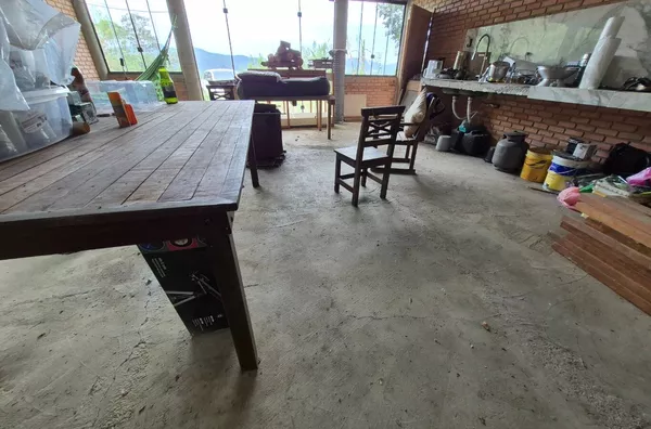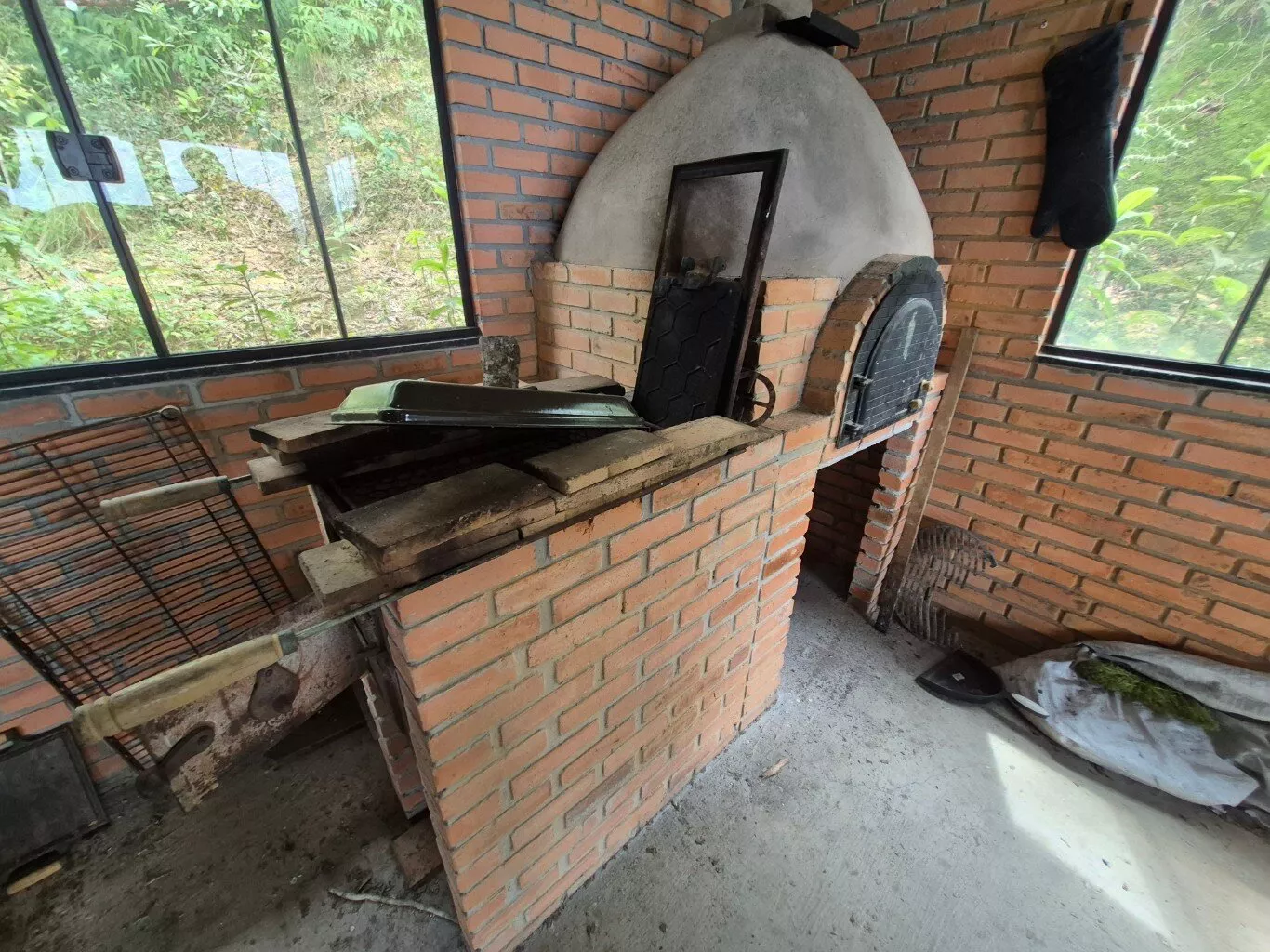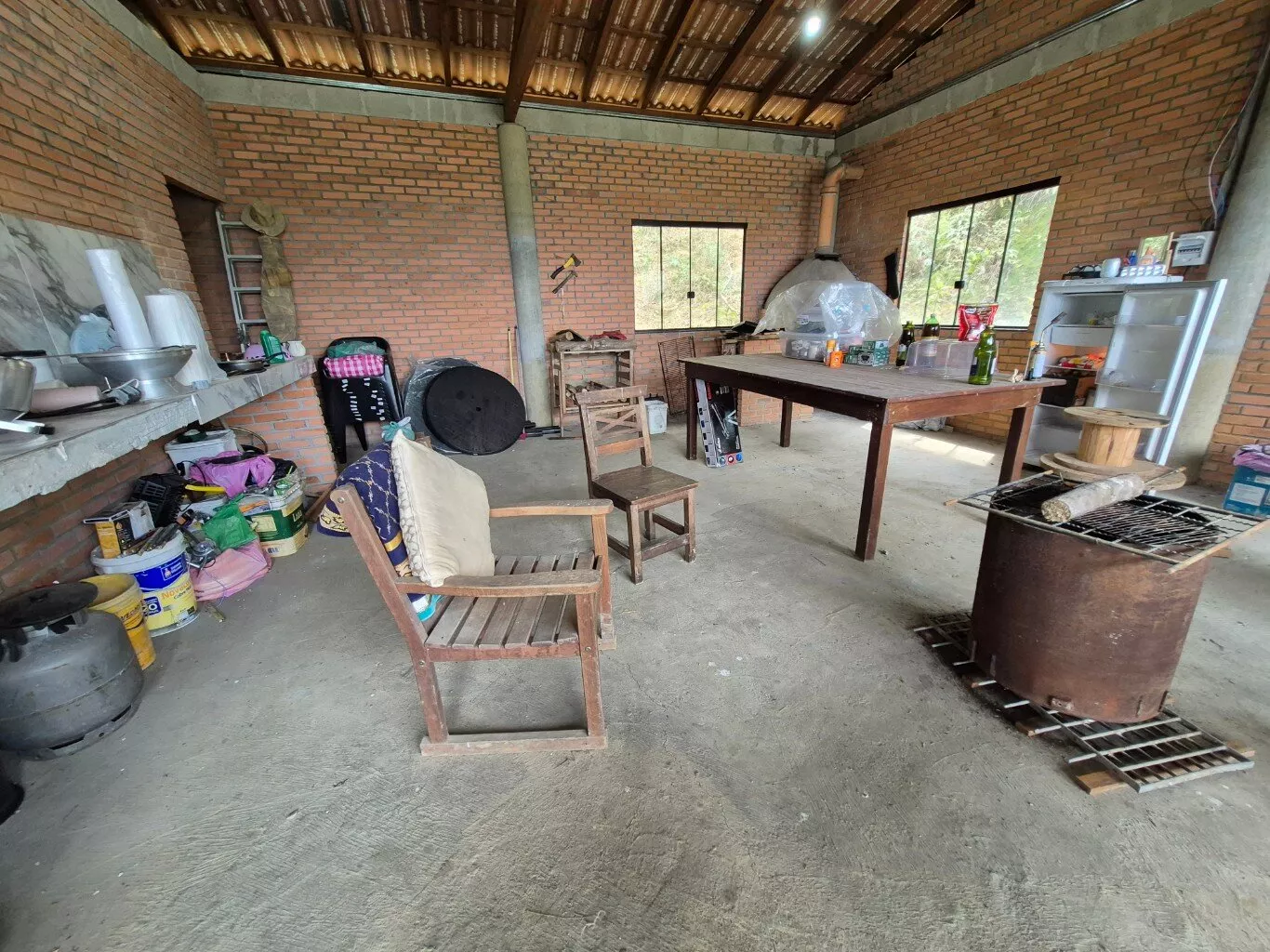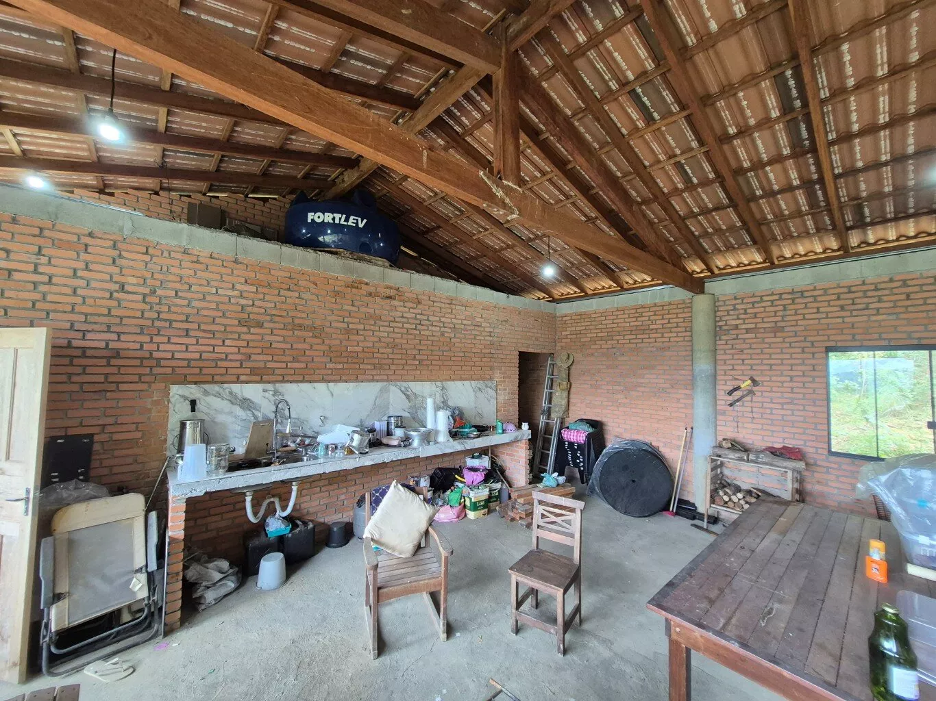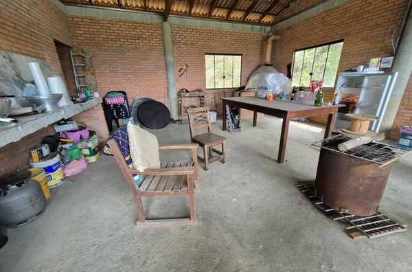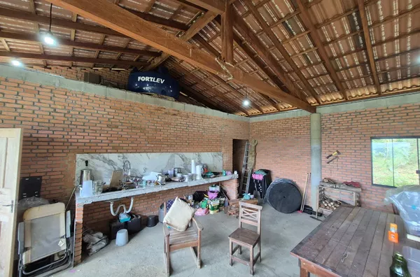 Galpão em alvenaria com aproximadamente 60,00m², com instalação de cozinha, 01 banheiro, depósito de ferramentas com forno e fogão a lenha, banheiro social e varanda.