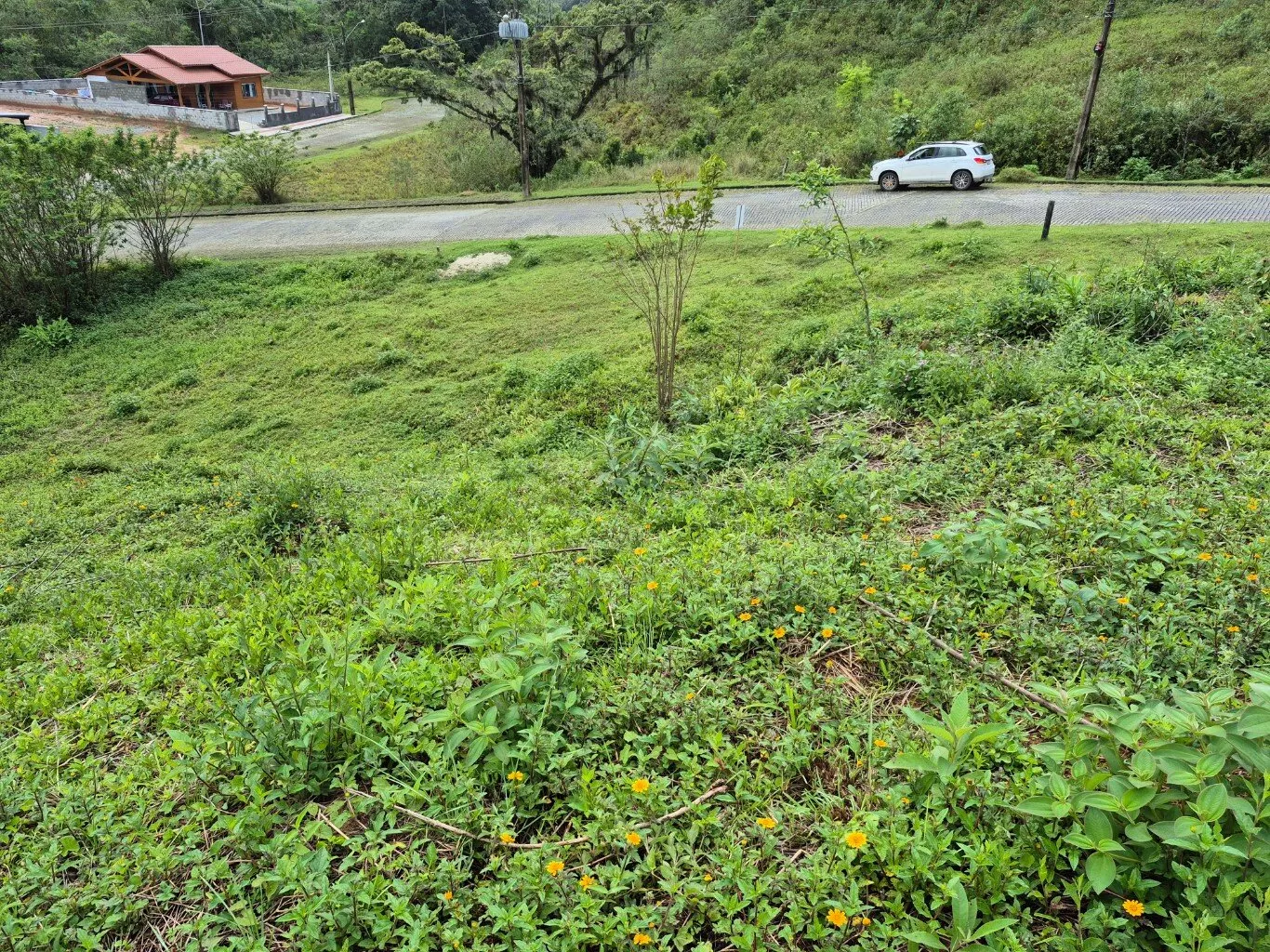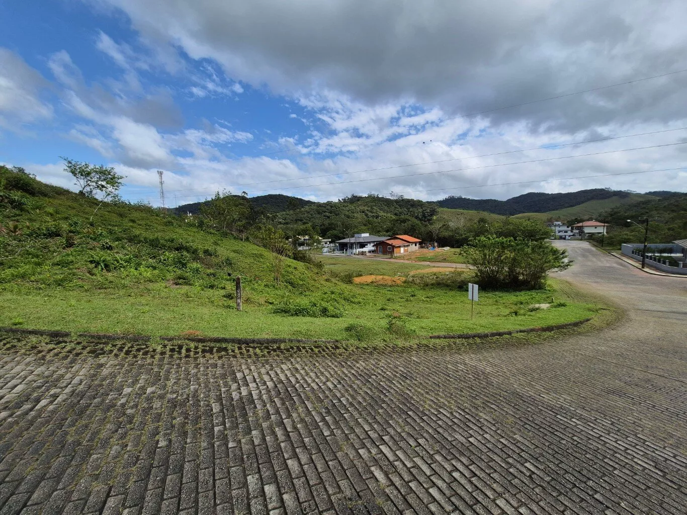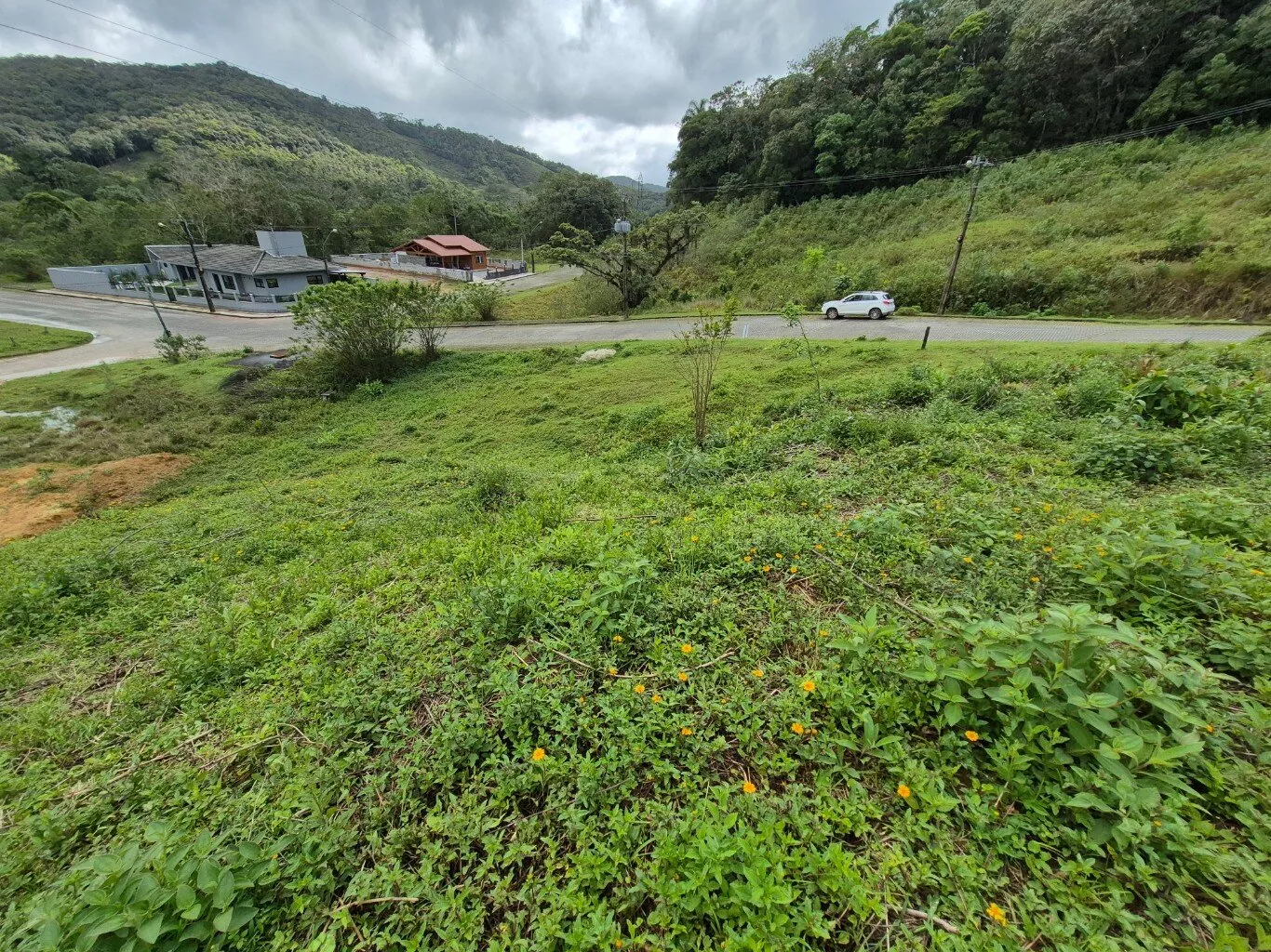 Terreno urbano de esquina com 557,00m², topografia aclive, documentação regular, com escritura pública e possibilidade de financiamento.