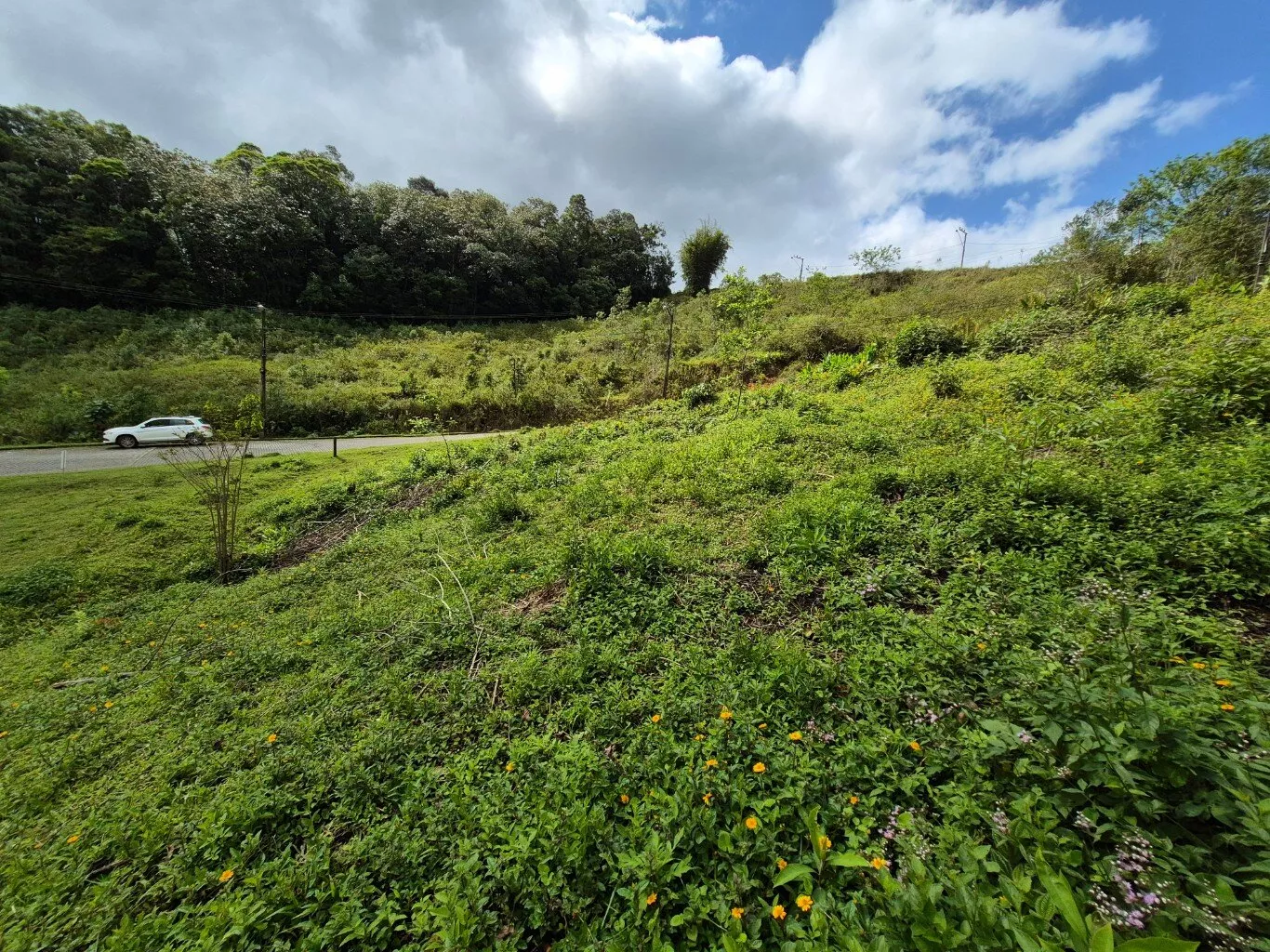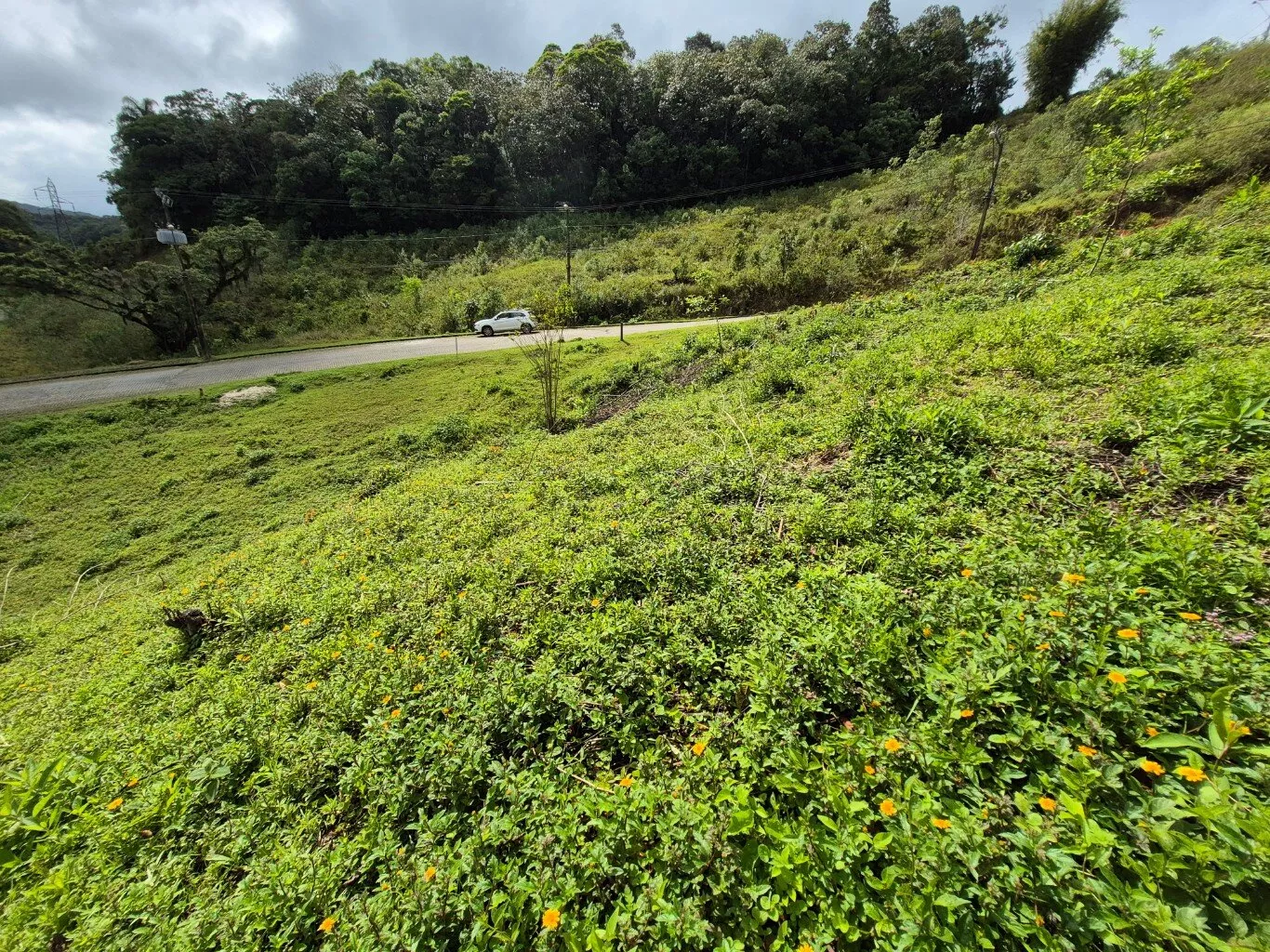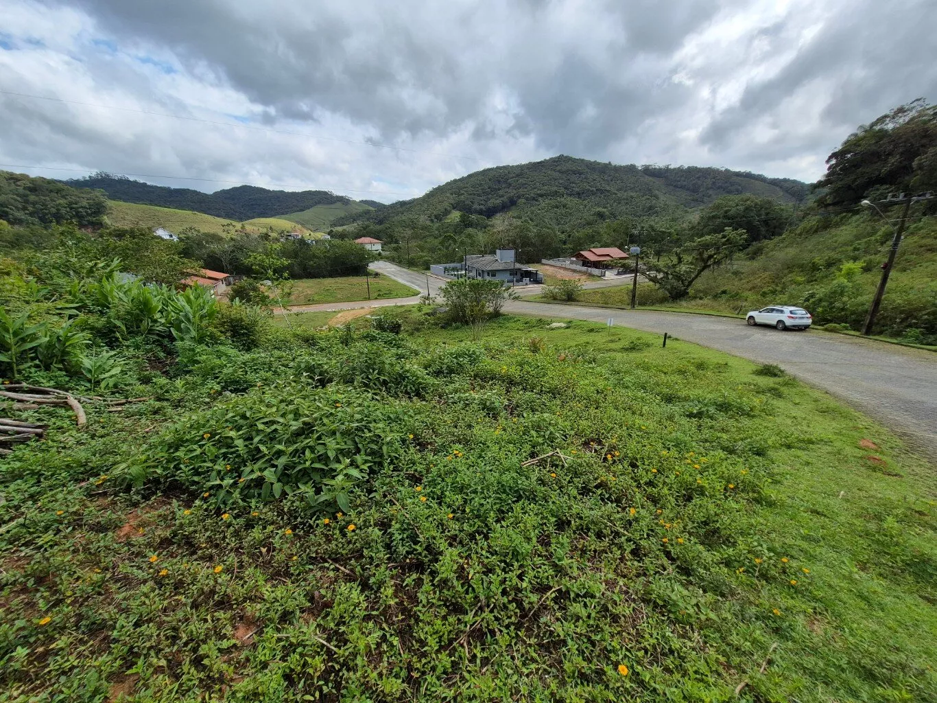 Terreno urbano de esquina com 557,00m², topografia aclive, documentação regular, com escritura pública e possibilidade de financiamento.