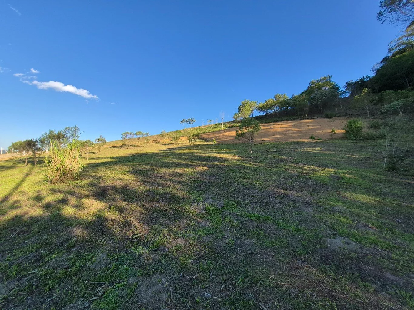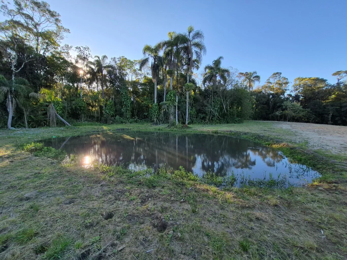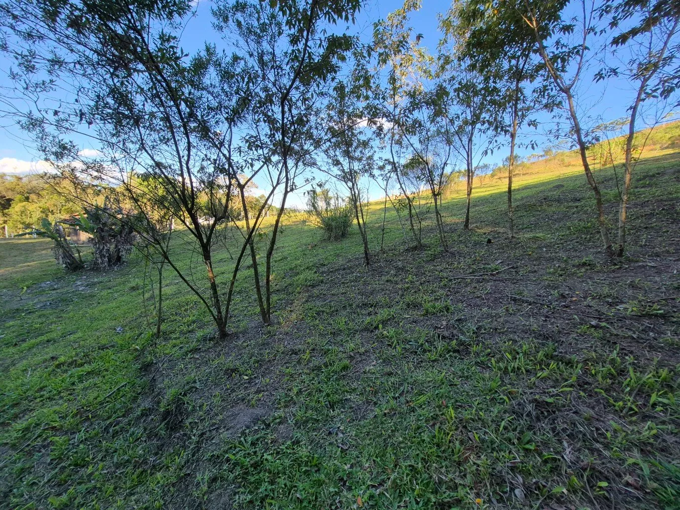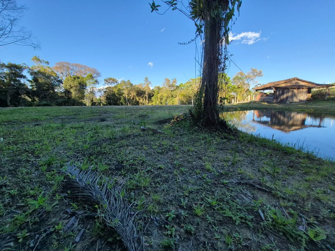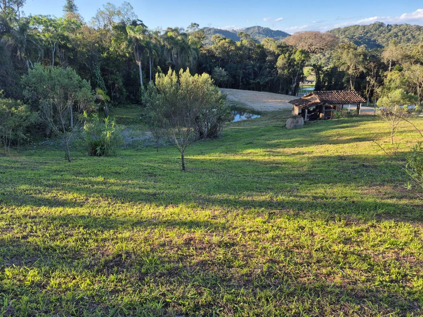 Topografia levemente inclinada, com ótimo espaço para plantio de frutíferas e horta, possui um pequeno rancho de madeira e lago artificial.