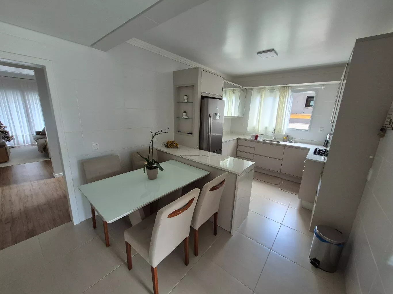 Com 158m² de área construída, o imóvel dispõe de 03 dormitórios, sendo 01 suíte, ambientes amplos, bem iluminados e ventilados, além de acabamento de excelente padrão e móveis planejados de muito bom gosto.