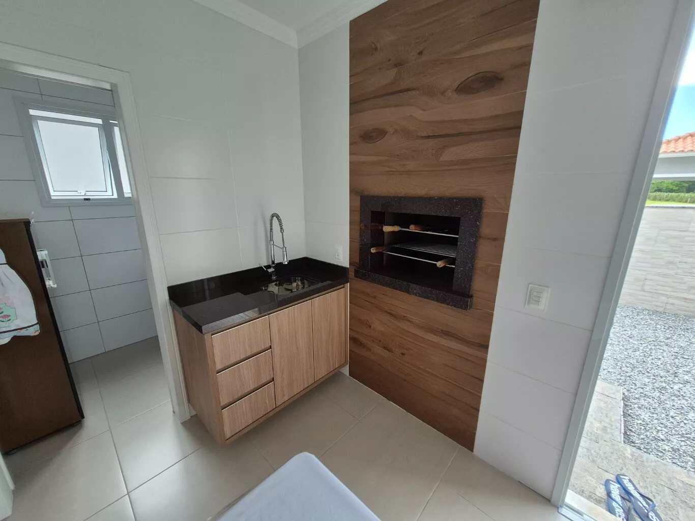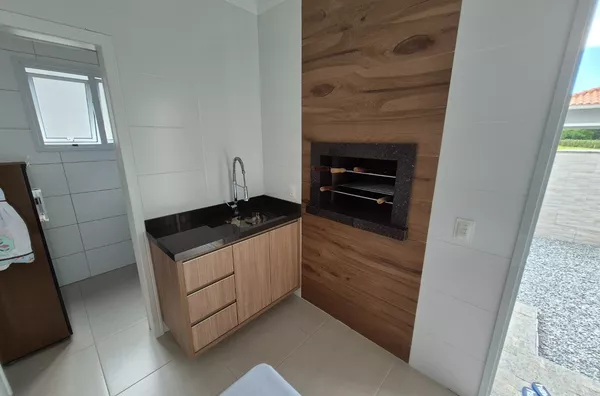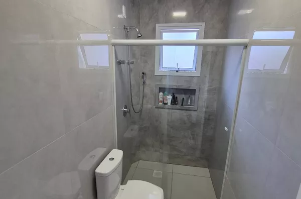 Conta ainda com 01 banheiro social e 01 lavabo, cozinha e sala integradas, lavanderia, garagem coberta, portão eletrônico e churrasqueira a carvão.