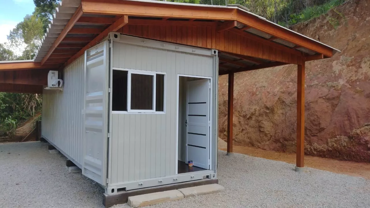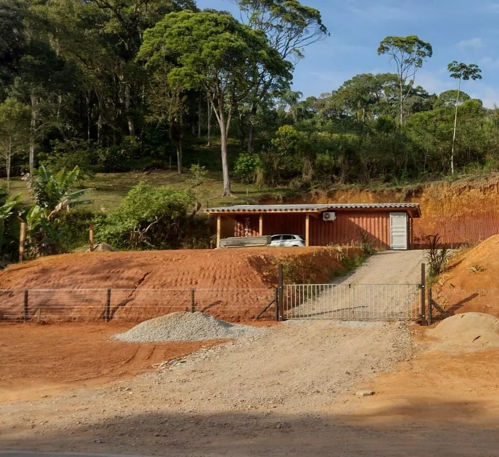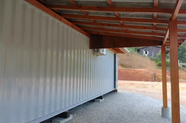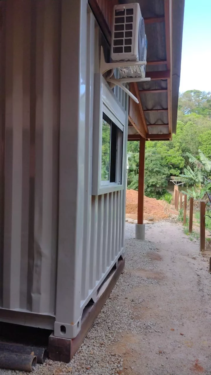 Possui um casa container com 88,22m², mista de madeira e alvenaria, com 02 dormitórios, sendo 01 suíte, sala e cozinha, lavanderia, 01 vaga de garagem coberta, 01 banheiro social, climatizada com ar condicionado na sala e no quarto, projeto em fase de finalização, 200m² que pode ser utilizado como jardim ou estacionamento.