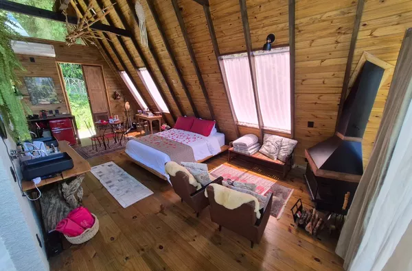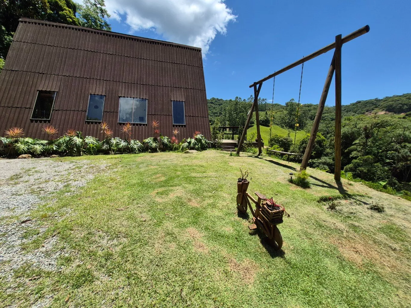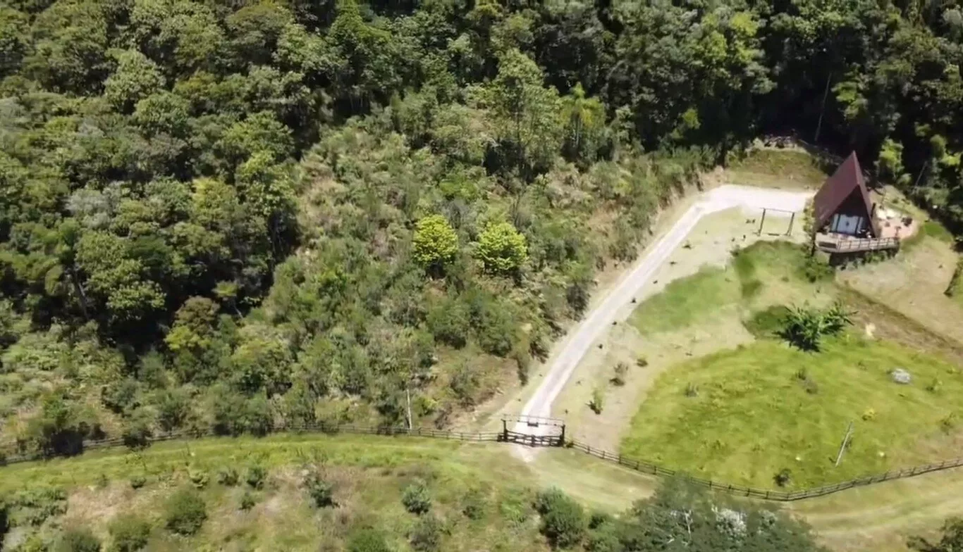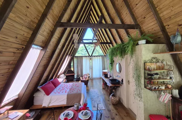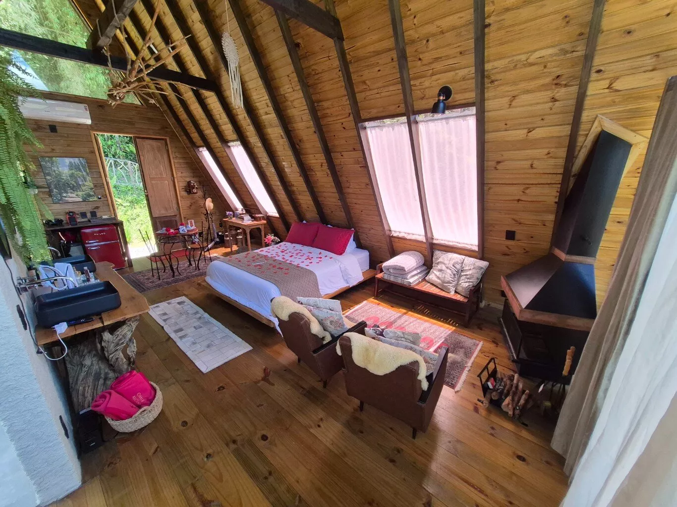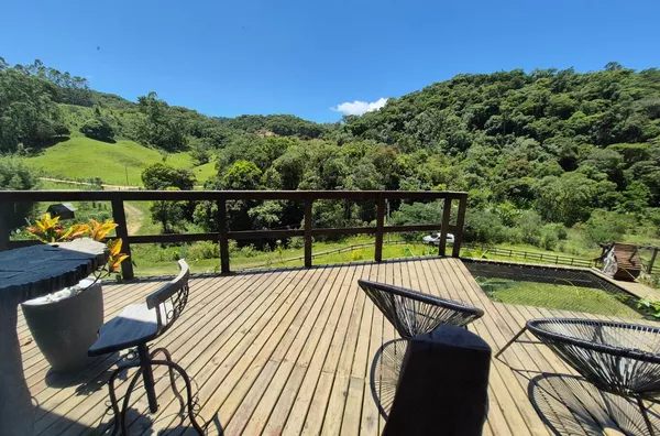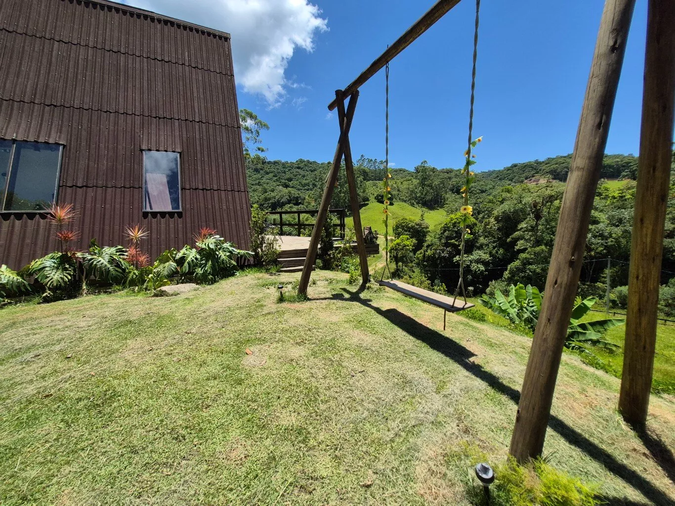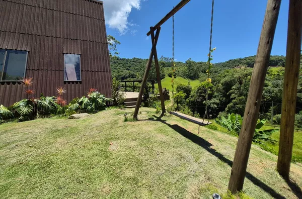 Maravilhoso chalé, totalmente mobiliado, ambiente interno em conceito aberto, cama de casal, cozinha, sala, banheira, bwc, ar condicionado, água aquecida, deck/sacada com vista para mata nativa, lareira de chão externa com ambiente, balanço, banheira externa, gramado no entorno do chalé com aproximadamente 3.000m².