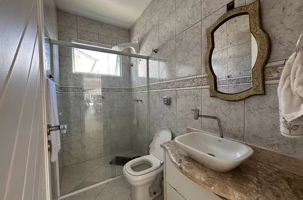 Esta residência de dois pavimentos está situada em um dos bairros mais valorizados da cidade, a apenas 2 km do centro de São Pedro de Alcântara, em local alto, seguro e sem risco de alagamento.