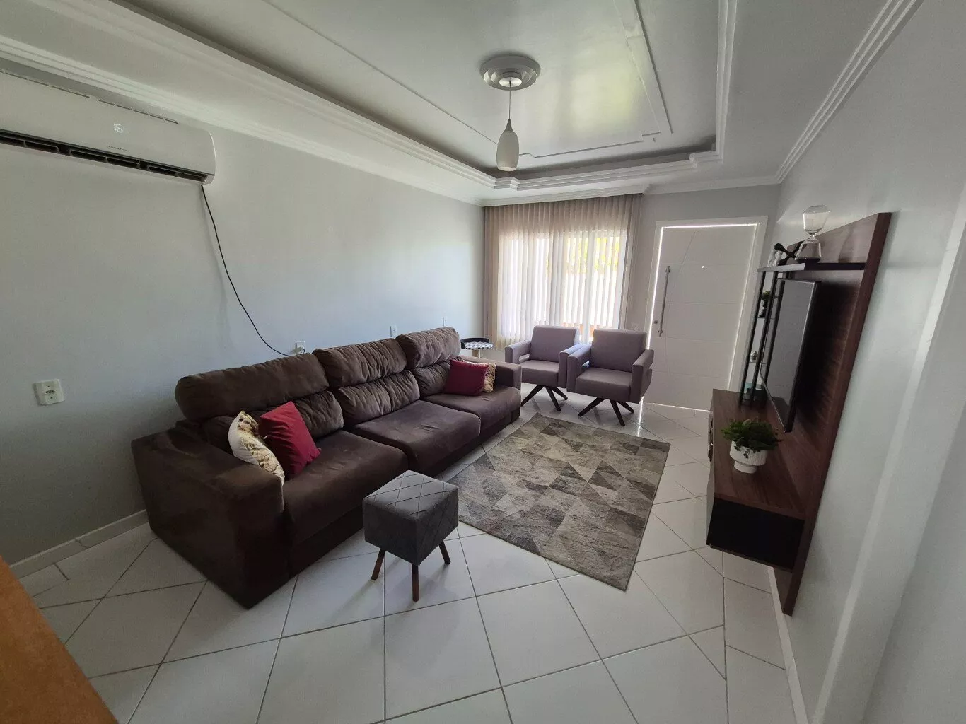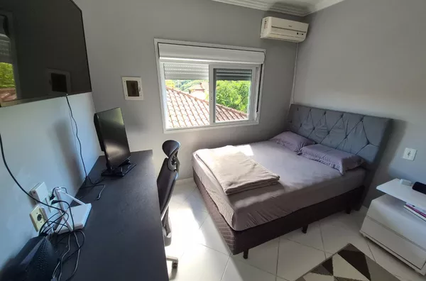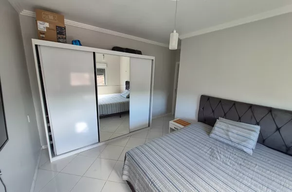 Possui 03 dormitórios com ar condicionado e persianas, sendo 01 ampla suíte, 01 banheiro social, sala com ar condicionado, cozinha e lavanderia, 02 vagas de garagem cobertas e 02 descobertas.
