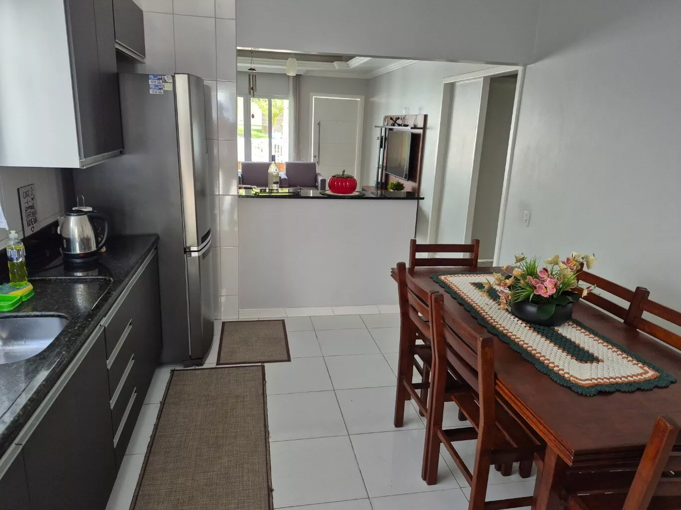 Ótimo acabamento com gesso, sofisticação e bom gosto, cozinha com móveis embutidos.