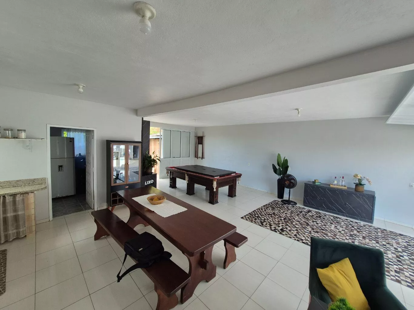 Área Gourmet com churrasqueira, mesa de bilhar, 01 banheiro e depósito, ambientes com ar condicionado.