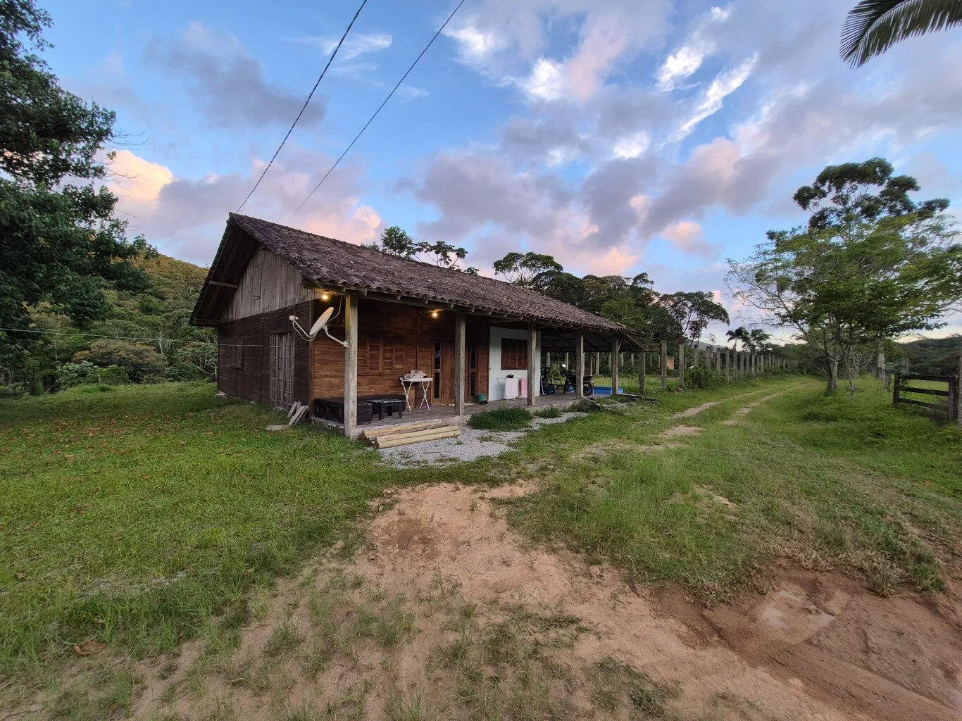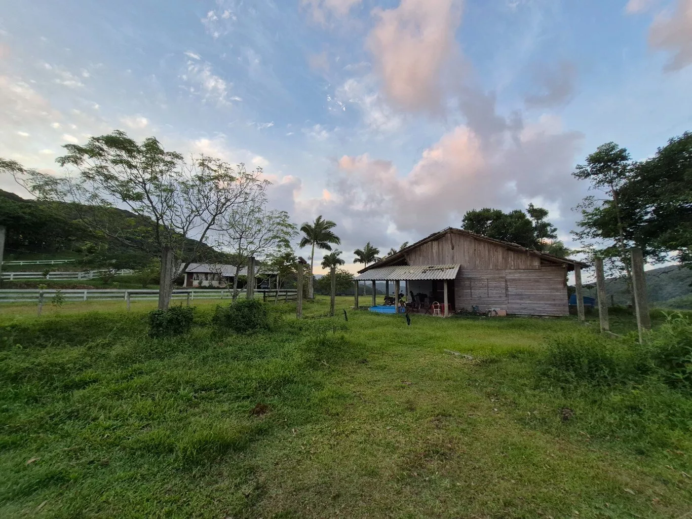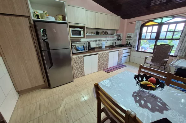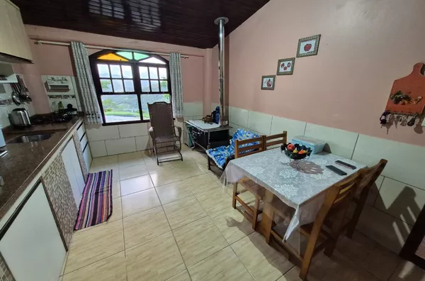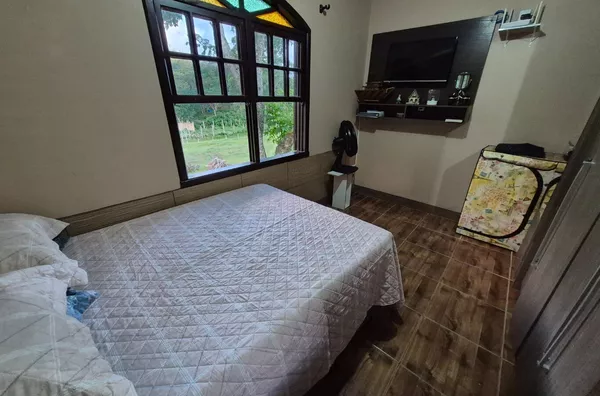 Possui 01 rancho de madeira e 02 casas, uma em alvenaria com 03 dormitórios, 01 banheiro social, varanda ampla. E outra casa mista de madeira com 02 dormitórios, 01 banheiro, varanda, sala e cozinha.