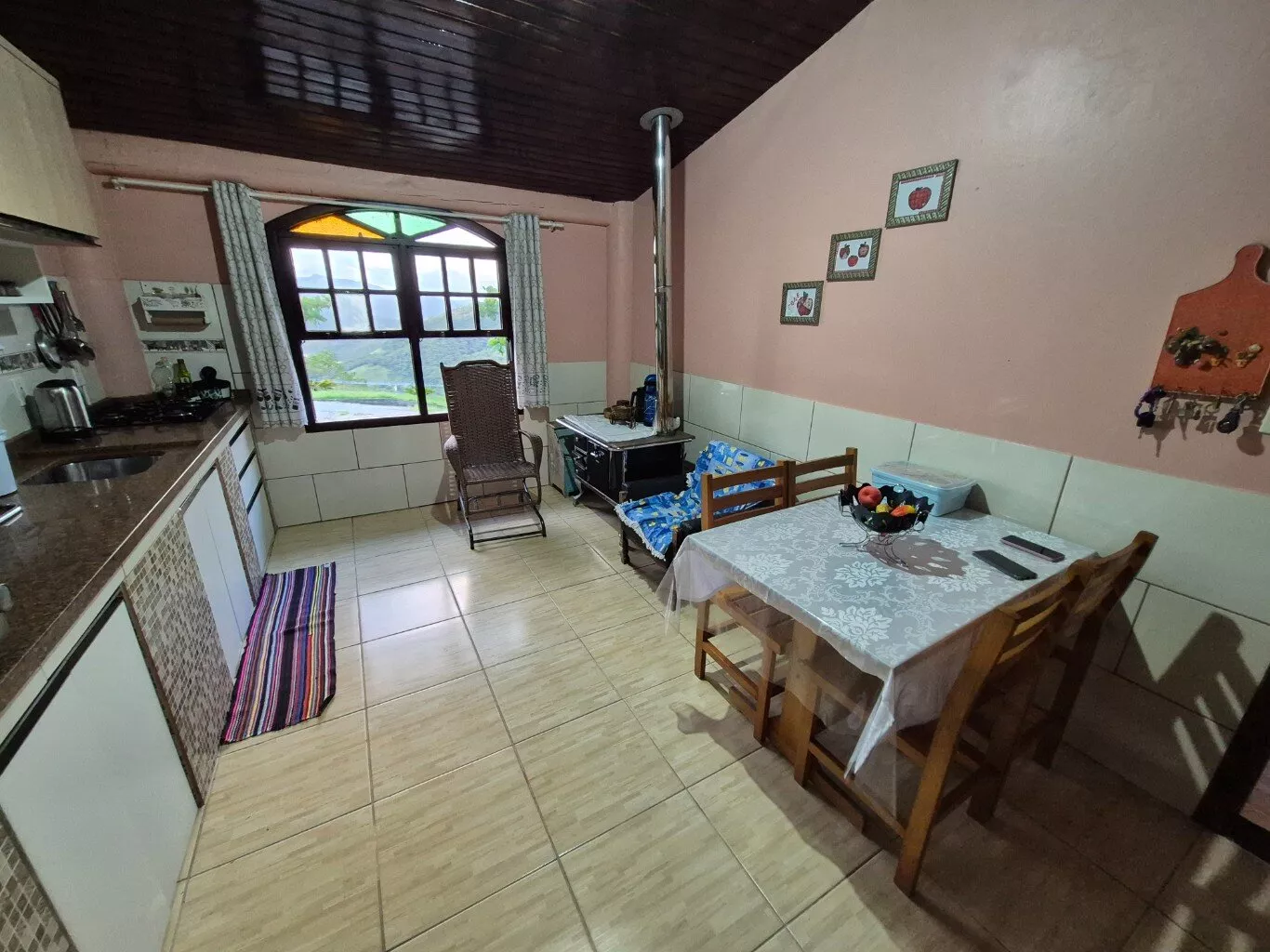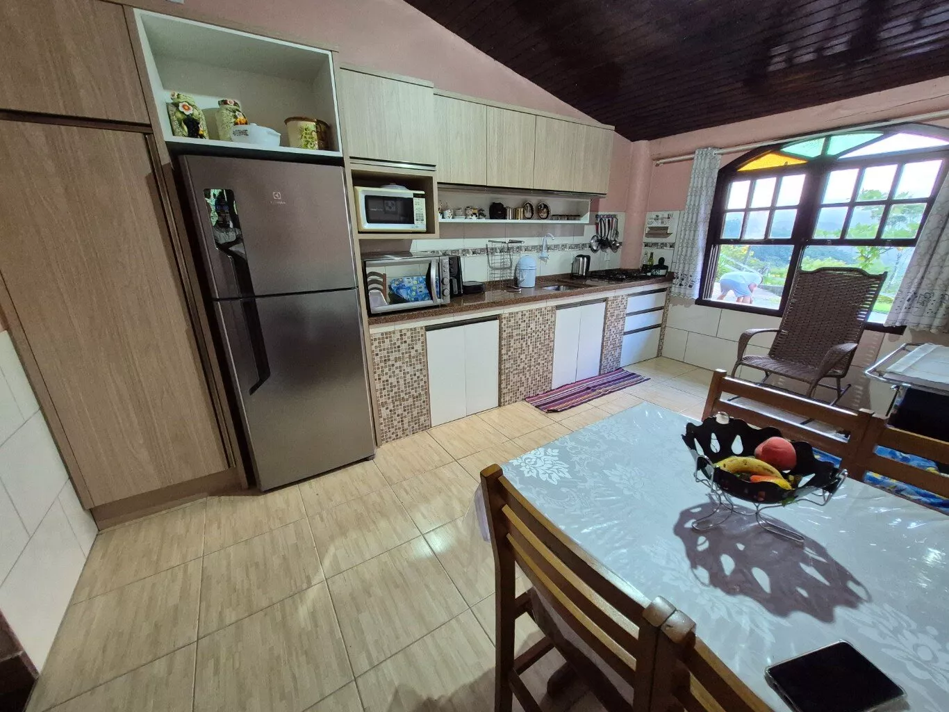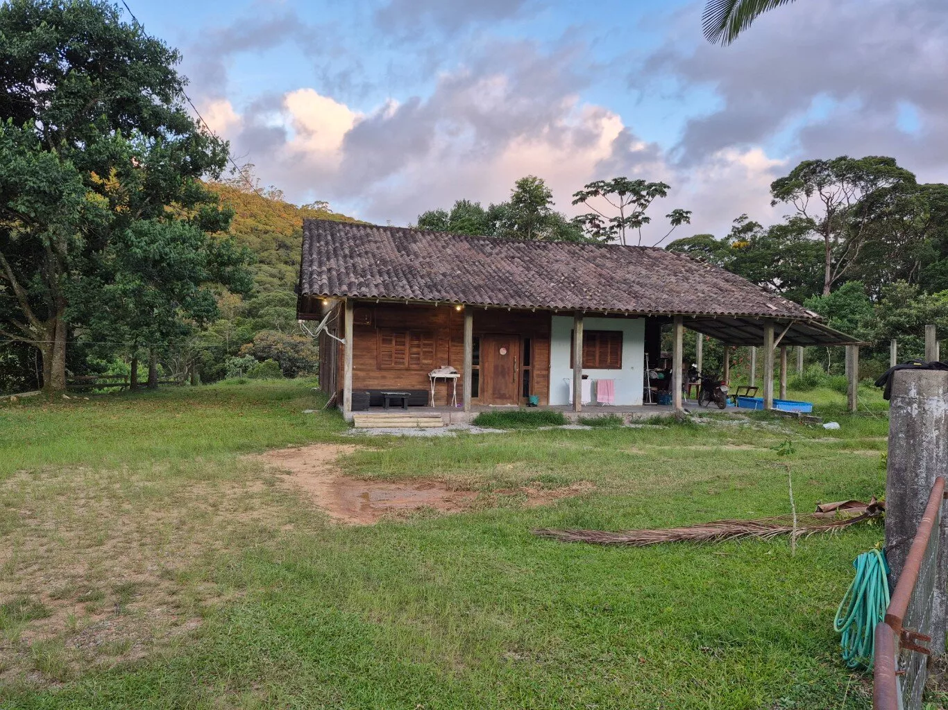 Possui 01 rancho de madeira e 02 casas, uma em alvenaria com 03 dormitórios, 01 banheiro social, varanda ampla. E outra casa mista de madeira com 02 dormitórios, 01 banheiro, varanda, sala e cozinha.